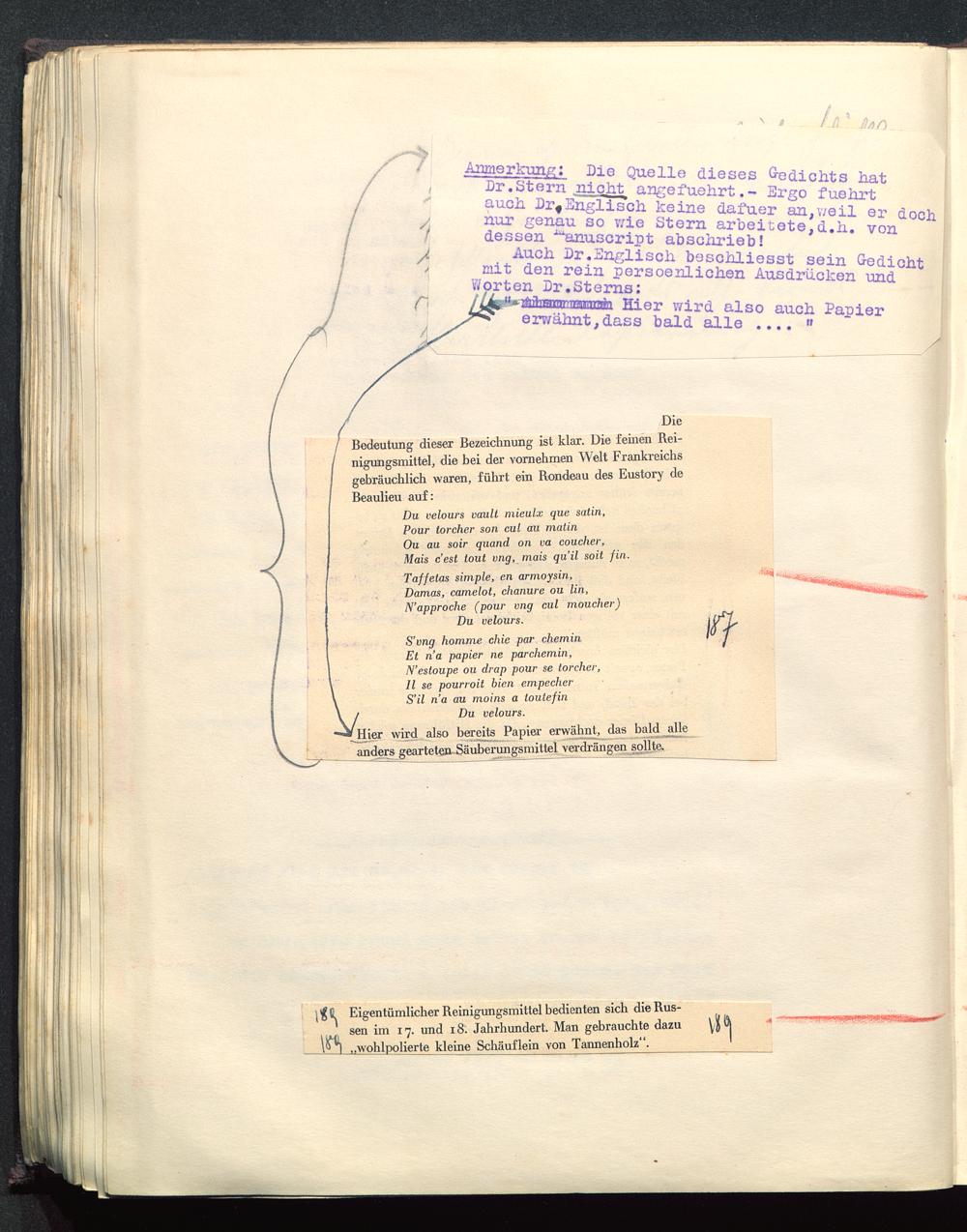 Hier wird also bereits Papier erwähnt, das bald jdleanders gearteten Säuberungsmittel verdrängen sohlte.