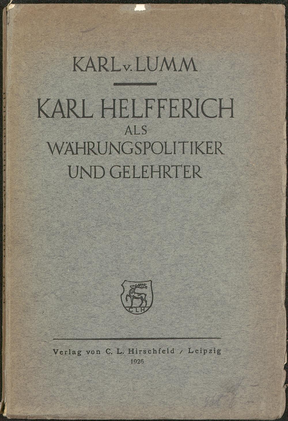 KARLv. LUMMKARL HELFFERICH ^ --V ALS ■WÄHRUNGSPOLITIKERUND GELEHRTERVerlag von C. L. Hirschfeld / Leipzig , ' • 1926