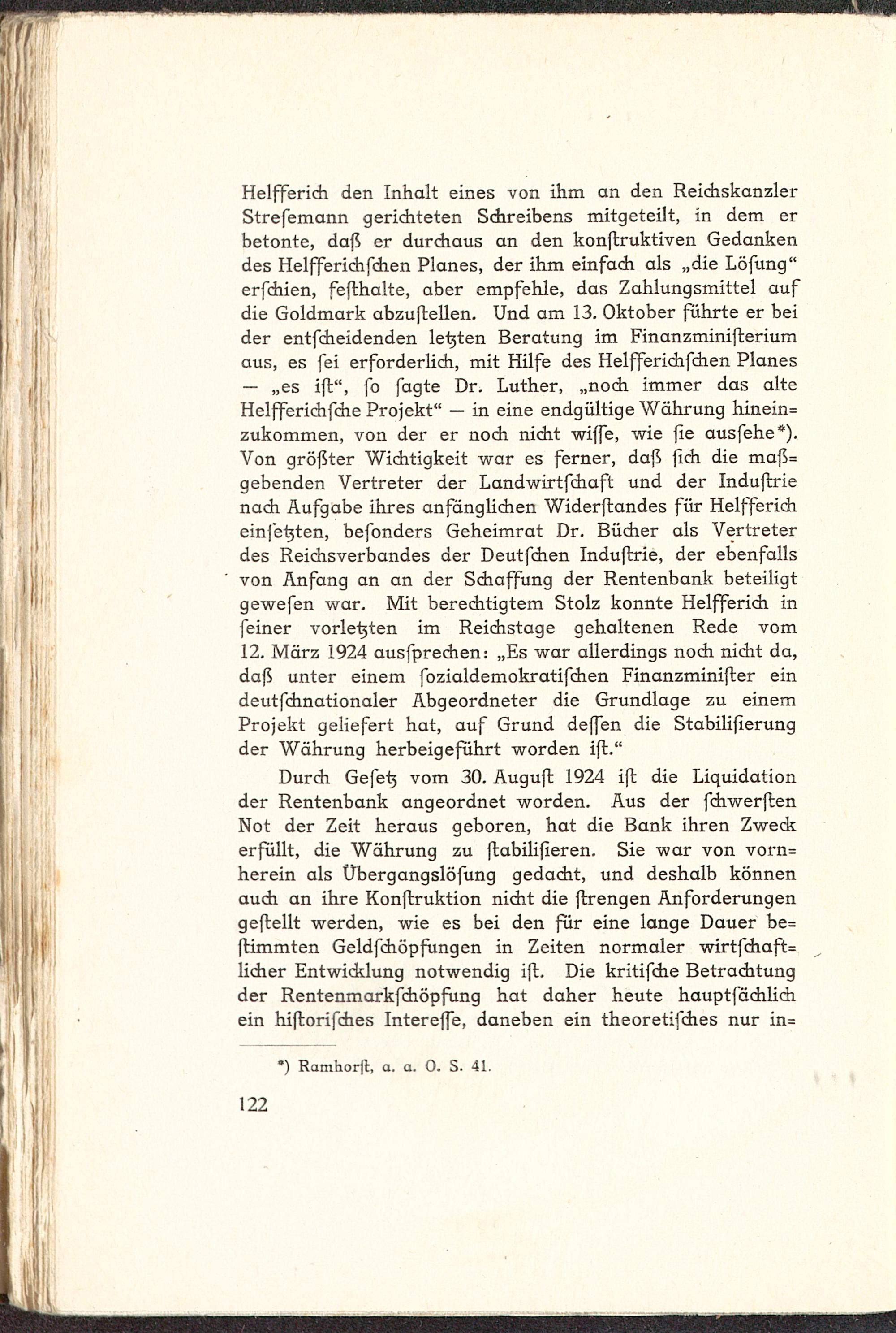 Durch Gefetj vom 30. Äuguft 1924 ift die Liquidationder Rentenbank angeordnet worden. Aus der fchwerftenNot der Zeit heraus geboren, hat die Bank ihren Zweckerfüllt, die Währung zu ftabilifieren. Sie war von vorn=herein als Übergangslöfung gedacht, und deshalb könnenauch an ihre Konftruktion nicht die ftrengen Anforderungengeftellt werden, wie es bei den für eine lange Dauer be=ftimmten Geldfchöpfiingen in Zeiten normaler wirtfchaft=lieber Entwicklung notwendig ift. Die kritifche Betrachtungder Rentenmarkfchöpfung hat daher heute hauptfächlichein hiflorifches Intereffe, daneben ein theoretifches nur in=