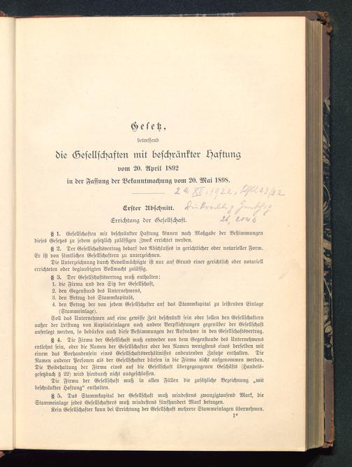 5. Das Stammkapital der Gesellschaft muß mindestens zwanzigtausend Mark, dieStammeinlage jedes Gesellschafters muß mindestens fünfhundert Mark betragen.