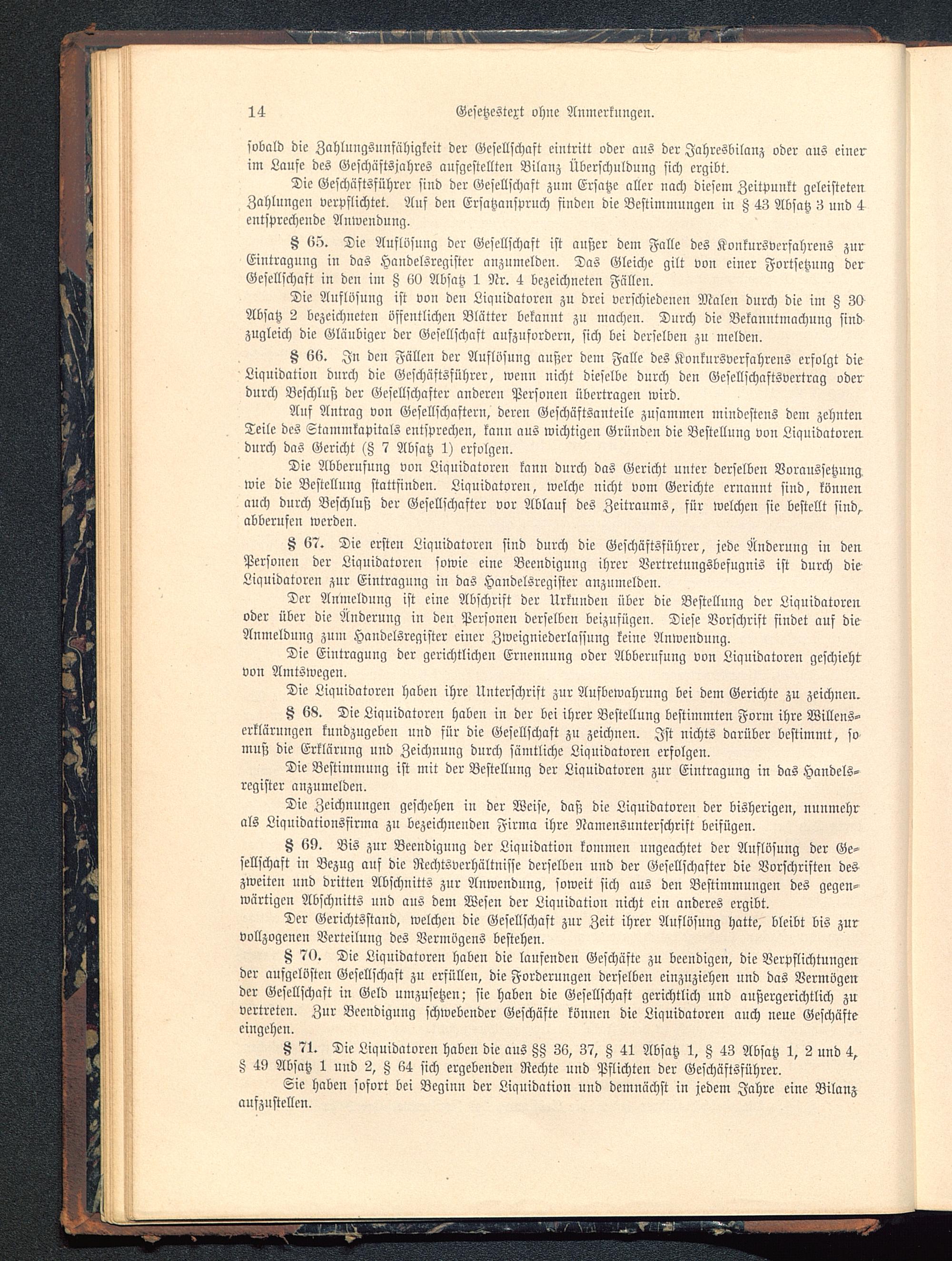 H 66. In den Fällen der Auflösung außer dem Falle des Konkursverfahrens erfolgt dieLiquidation durch die Geschäftsführer, wenn nicht dieselbe durch den Gesellschaftsvertrag oderdurch Beschluß der Gesellschafter anderen Personen übertragen wird.