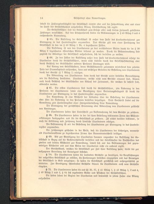 K 69. Bis zur Beendigung der Liquidation kommen ungeachtet der Auflösung der Ge-sellschaft in Bezug auf die Rechtsverhältnisse derselben und der Gesellschafter die Vorschriften deszweiten und dritten Abschnitts zur Anwendung, soweit sich aus den Bestimmungen des gegen-wärtigen Abschnitts und aus dem Wesen der Liquidation nicht ein anderes ergibt.