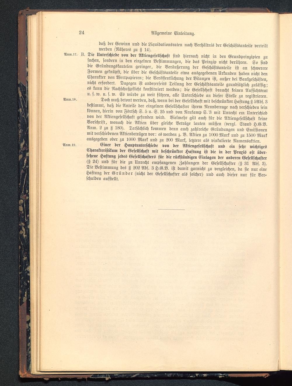 Anm .17. L. Die Unterschiede von der Aktiengesellschaft sind hiernach nicht in den Grundprinzipien zusuchen, sondern in den einzelnen Bestimmungen, die das Prinzip nicht berühren. So sinddie Gründungskautelen geringer, die Veräußerung der Geschäftsanteile ist an schwerereFormen geknüpft, die über die Geschäftsanteile etwa ausgegebenen Urkunden haben nicht denCharakter von Wertpapieren? die Veröffentlichung der Bilanzen ist, außer bei Bankgeschäften,nicht erfordert. Dagegen ist andererseits Teilung der Geschäftsanteile grundsätzlich zulässig;es kann die Nachschußpflicht konstituiert werden; die Gesellschaft braucht keinen Aufsichtsratu. f. w. u. f. w. Es würde zu weit führen, alle Unterschiede an dieser Stelle zu registrieren.