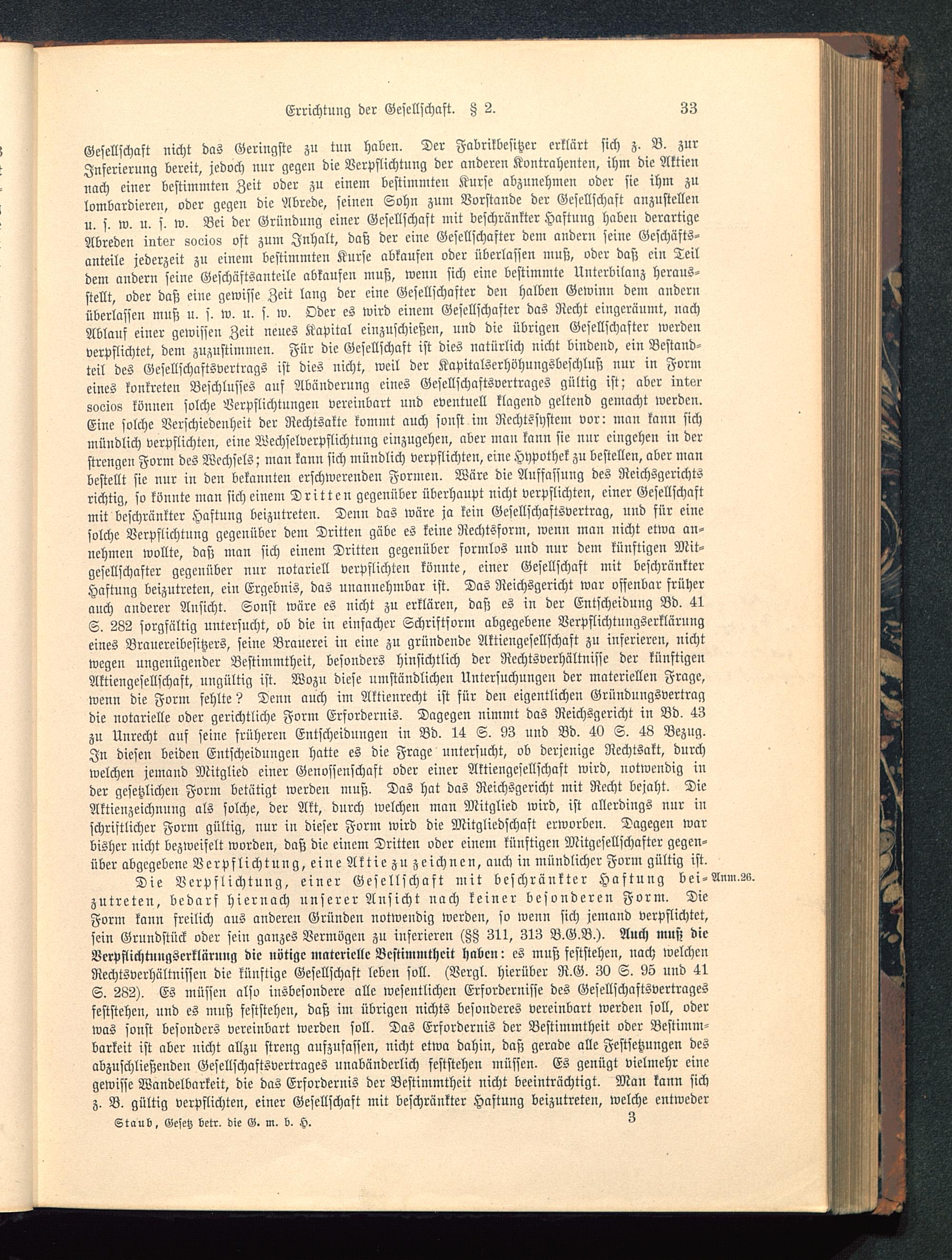Die Verpflichtung, einer Gesellschaft mit beschränkter Haftung bei-zu treten, bedarf hiernach unserer Ansicht nach keiner besonderen Form. DieForm kann freilich aus anderen Gründen notwendig werden, so wenn sich jemand verpflichtet,sein Grundstück oder sein ganzes Vermögen zu inserieren (ZA 311, 313 B.G.B. ). Auch muß dieVerpflichtungserkläruug die «ötige materielle Bestimmtheit haben: es muß feststehen, nach welchenRechtsverhältnissen die künftige Gesellschaft leben soll. (Vergl. hierüber R.G. 39 S. 95 und 41S. 282). Es müssen also insbesondere alle wesentlichen Erfordernisse des Gesellschaftsvertragesfeststehen, und es muß feststehen, daß im übrigen nichts besonderes vereinbart werden soll, oderwas sonst besonders vereinbart werden soll. Das Erfordernis der Bestimmtheit oder Bestimm-barkeit ist aber nicht allzu streng aufzufassen, nicht etwa dahin, daß gerade alle Festsetzungen desabzuschließenden Gesellschaftsvertrages unabänderlich feststehen müssen. Es genügt vielmehr einegewisse Wandelbarkeit, die das Erfordernis der Bestimmtheit nicht beeinträchtigt. Man kann sichz. B. gültig verpflichten, einer Gesellschaft mit beschränkter Haftung beizutreten, welche entwederStaub, Gesetz betr. die G. m. b. H. 3