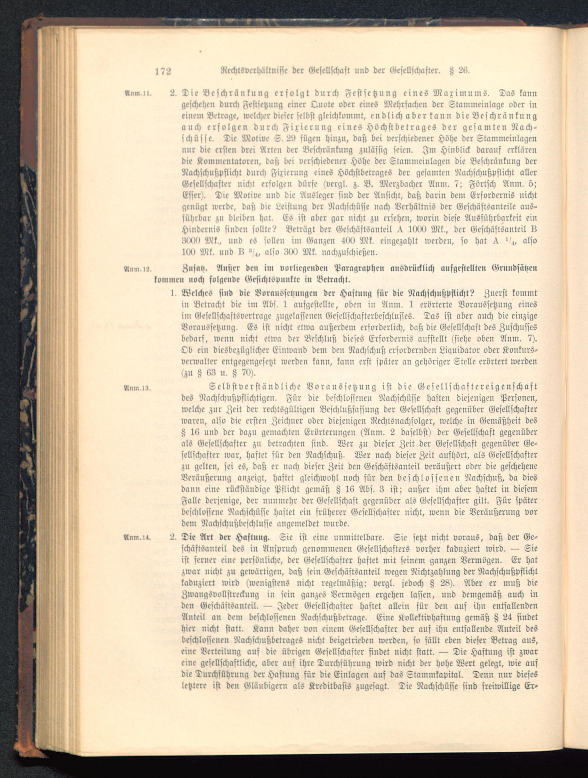 l. Welches sind die Voraussetzungen der Haftung für die Nachschußpflicht? Zuerst kommtin Betracht die im Abs. 1 ausgestellte, oben in Anm. 1 erörterte Voraussetzung einesim GcscllschastSvcrtrage zugelassenen Gcscllschaftcrbcschlusses. Das ist aber auch die einzigeVoraussetzung. Es ist nicht etwa außerdem erforderlich, daß die Gesellschaft des Zuschussesbedarf, wenn nicht etwa der Beschluß dieses Erfordernis aufstellt (siehe oben Anm. 7).Ob ein diesbezüglicher Einwand dem den Nachschub erfordernden Liquidator oder Konkurs-verwalter entgegengesetzt werden kann, kann erst später an gehöriger Stelle erörtert werden(zu 8 83 u. 8 7V).