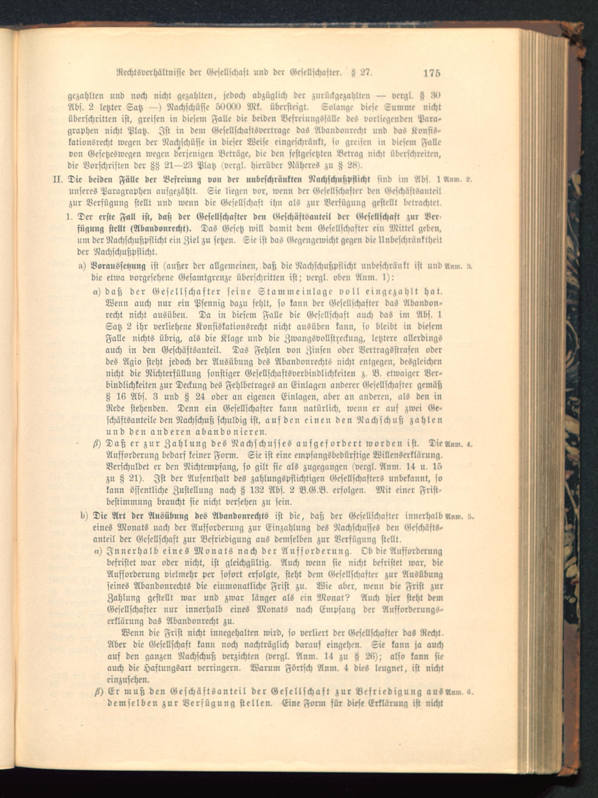 gezahlten und noch nicht gezahlten, jedoch abzüglich der zurückgezahlten — vergl, 8 3»Abs. 2 letzter Satz —) Nachschüssc öUtXXI Mk. übersteigt. Solauge diese Summe nichtüberschritten ist, greifen in diesem Falle die beiden BcsrciungSsälle des vorliegende» Para-graphen nicht Platz. Ist in dem GescllschaslSvcrtragc das Abandonrecht und das KonfiS-kationsrccht wegen der Nahschüsse in dieser Weise eingeschränkt, so greisen in diesem Fallevon Gesctzcswegcn wegen derjenigen Beträge, die den festgesetzten Betrag nicht überschreiten,die Vorschriften der §8 21—23 Platz (vergl. hierüber Näheres zu 8 23).