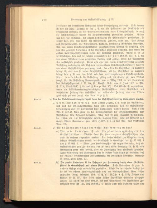 führer in Gemeinschaft mit einem Prokuristen. Diese Ausnahme ist zwar inunserem Gesetze nicht ausdrücklich zugelassen. Allein die herrschende Ansicht hatsie bei der offenen Handelsgesellschaft und der Aktiengesellschaft schon früherzugelassen (vergl. besonders R.G. 40 S. 17; R.O.H. 8 S. 337; Johow undKünpcl 10 S. 33). Wir selbst haben früher begriffliche Bedenken hiergegengehabt. Da jedoch das neue H.G.B, aus dem Standpunkt der begrifflichen Zu-lässigkcit steht (88 12S, 232 H.G.B.), so lassen auch wir dieselben sollen und