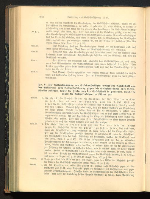 3. Dagegen hat die Minderheit kein Recht, gegen den Willen der Mehrheit Prozesseim Rainen der Gesellschaft anzustellen (vergl. Anm. 35 zu § 45).