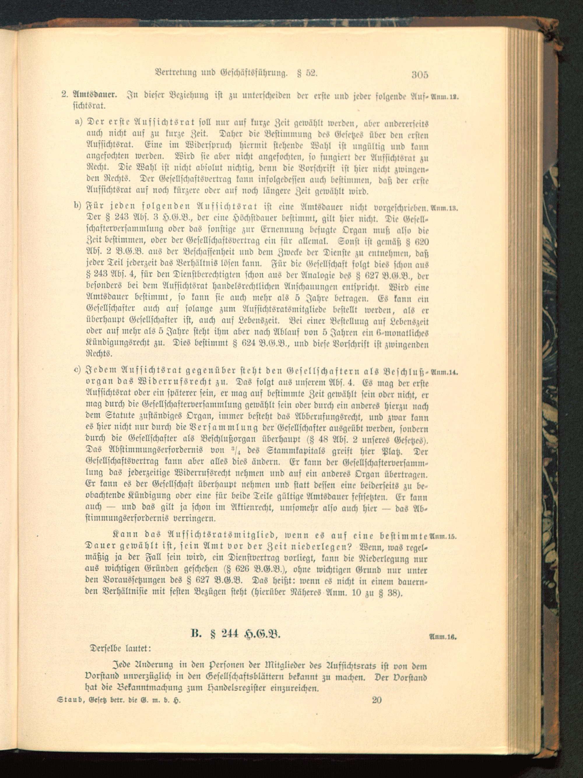 b) Für jeden folgenden Aussichtsrat ist eine Amtsdauer nicht vorgeschrieben, «,»»>».Der Z 243 Abs. 3 H.G.B,, der eine Höchstdauer bestimmt, gilt hier nicht. Die Gesell-schafterversammlung oder das sonstige zur Ernennung befugte Organ inust also die