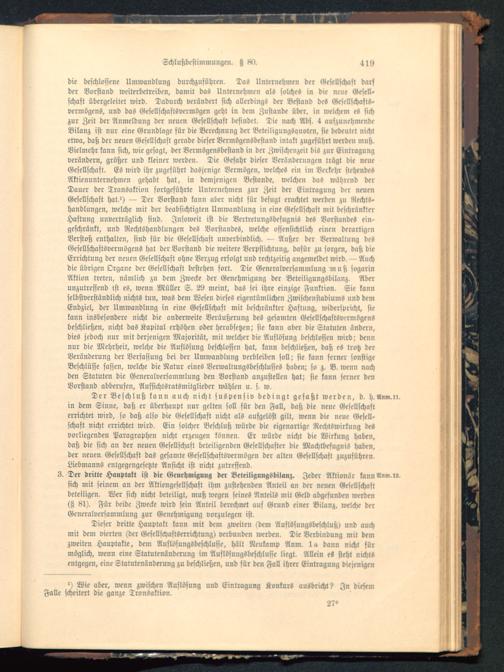 Der Beschluß kann auch nicht suspensiv bedingt gefaßt werden, d. H.Anm.n.in dem Sinne, daß er überhaupt nur gelten soll für den Fall, daß die neue Gesellschafterrichtet wird, so daß also die Gesellschaft nicht als aufgelöst gilt, wenn die neue Gesell-schaft nicht errichtet wird. Ein solcher Beschluß würde die eigenartige Rcchtswirkung desvorliegenden Paragraphen nicht erzeugen können. Er würde nicht die Wirkung haben,daß die sich an der neuen Gesellschaft beteiligenden Gesellschafter die Machtbefugnis haben,der neuen Gesellschaft das gesamte Gcsellschastsvermögen der alten Gesellschaft zuzuführen.Liebmanns entgegengesetzte Ansicht ist nicht zutreffend.