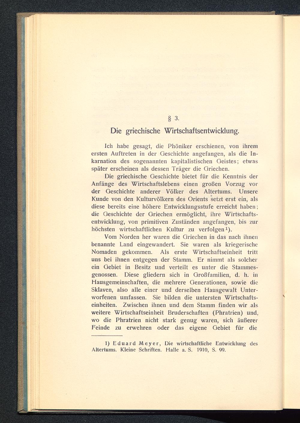 Die griechische Geschichte bietet für die Kenntnis derAnfänge des Wirtschaftslebens einen großen Vorzug vorder Geschichte anderer Völker des Altertums. UnsereKunde von den Kulturvölkern des Orients setzt erst ein, alsdiese bereits eine höhere Entwicklungsstufe erreicht haben;die Geschichte der Griechen ermöglicht, ihre Wirtschafts-entwicklung, von primitiven Zuständen angefangen, bis zurhöchsten wirtschaftlichen Kultur zu verfolgen 1 ).