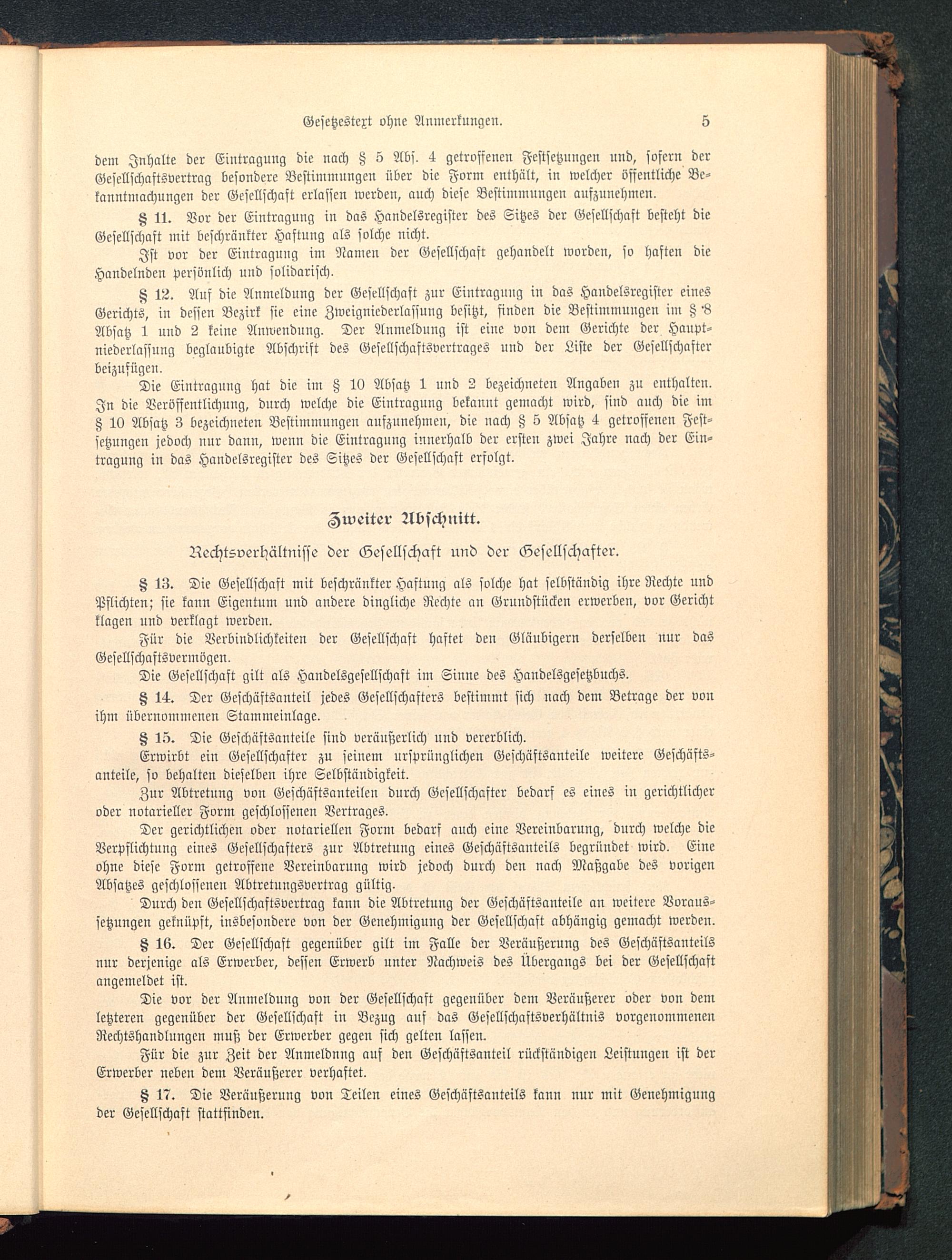 Zweiter Abschnitt. Rechtsverhältnisse der Gesellschaft und der Gesellschafter.