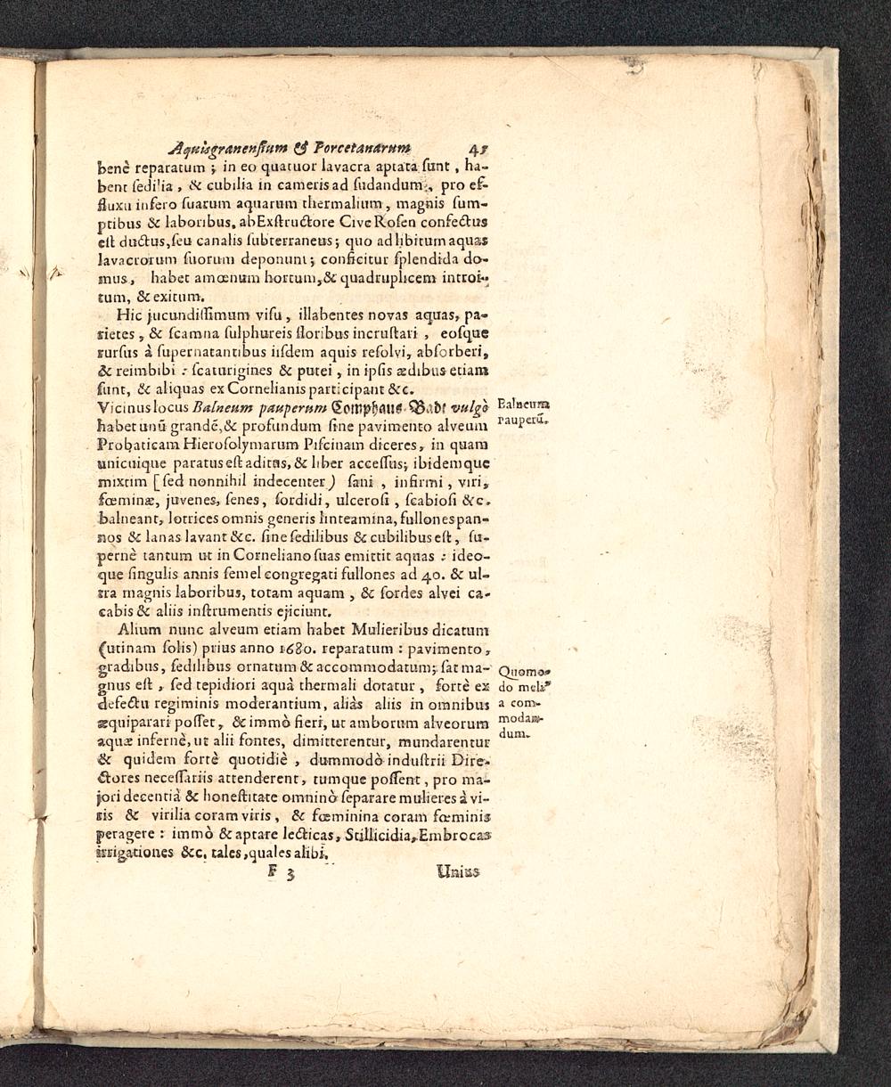 JieftitsgrMenftPtm Torcetanttrttm 47bene reparacum ; in eo quacuor lavacra apiata funt , ha-benc fedilta , & cubilia m eamerisad fudandum-;, pro ef-fiuxu infeio fuarum aquarum thermalium, magnis fum-ptibus & kbonbus. abExftructore CivcRofen confectuselt du<Sfcl|s,feu canalis lubterraneus \ quo adhbitumaqusslavacroium fuorum deponuni; conficitur fplendida do-mus, habec amcenum horcuni,& quadruphcem inrroi-*tum, &exicurn.