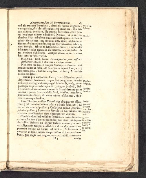 Inter Thermas noftras Cornelianrg ob aquarum effica- Deter-ciam [ etfi omnium minus calore aCiuali gaudcant] ad ° UBatOThoram vix tolerari poflunt; Csfariana: calidae .morare- i' anum