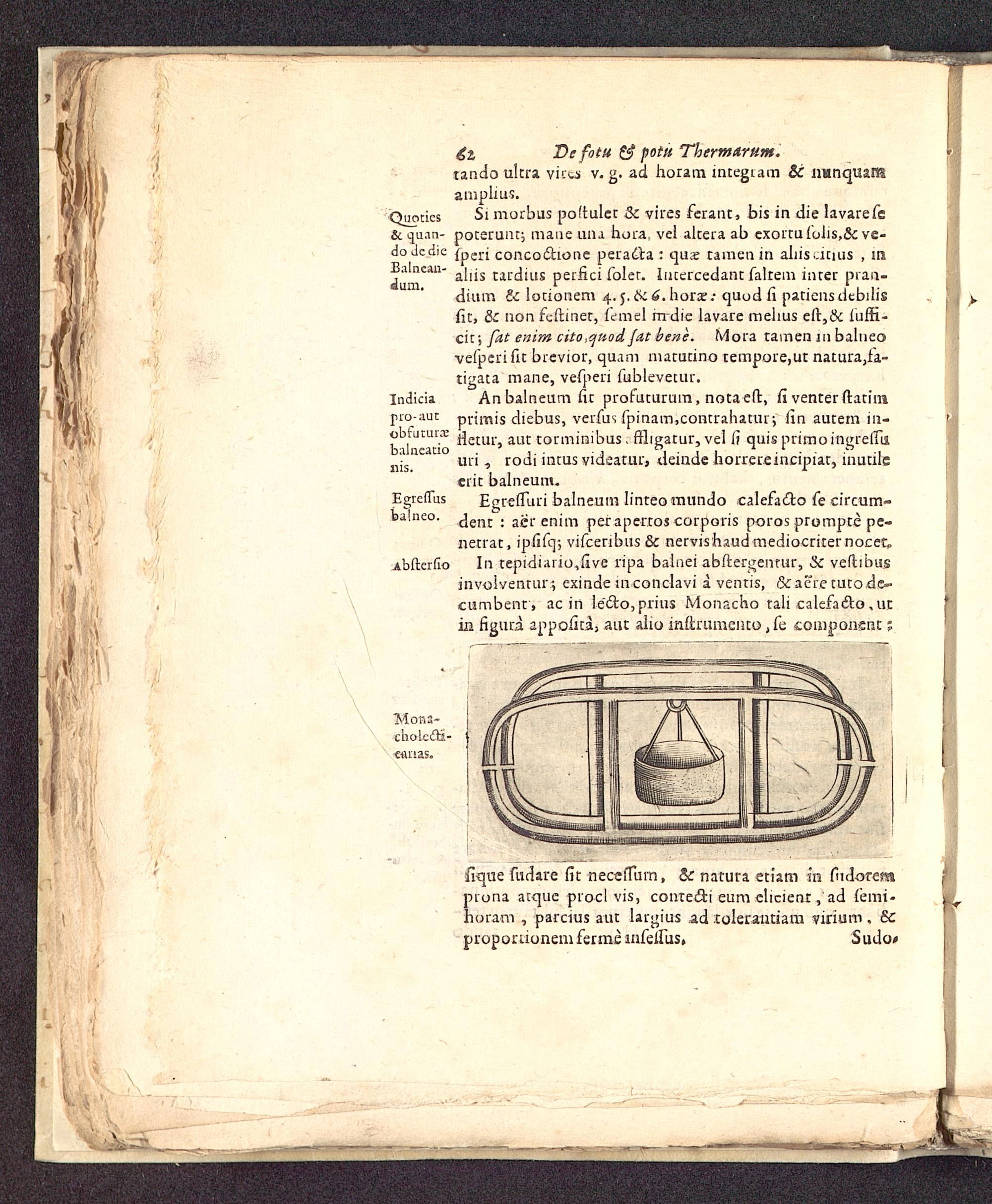 denc : acr enim per apertos corporis poros prompte pe-netrat, ipiifq; vifcenbus & nervishaud mediocrirernocet„In tepidiaiio,five ripa balnei abfte-rgenrur, & veftibu.sinvolvenrur; c-xinde mconclavi a ventis, & acreruto.de-cumbenr, ac in le'cto,prius Monacho cali calefa&o, utin figura appofica, aut alio inftrumeiuo, fe componenc;