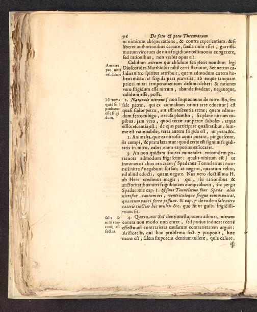 5. An non quidam fontes mineralcs eotumdem po-tarores admodum frigefcunt: qualis ninirum eft ) utinnumeros alios reticeam ( Spadanus Tonneletius : non-neanitro . ? negabunt forfan; at negent, quantum vclint,nil aliud edodi, quam negare. Nos vero dodtiffiino H.ab Heer credimus magis ; qui , .ibi rationibus &audroritatibusnitri frigiditatem comprobavit, fic pergitSpadacrene cap. J. &fane Tonneletiut fons Spada aliunitrofior , tantumori , ventriculoqtte frigtu eommunicat,ejnantnmpauci ferre pojfunt. & cap./ 1 dc eodcmfa/e nitroczterij tinElior hic mnltis &c. quo fitut guftu frigidiffi-mum fit.