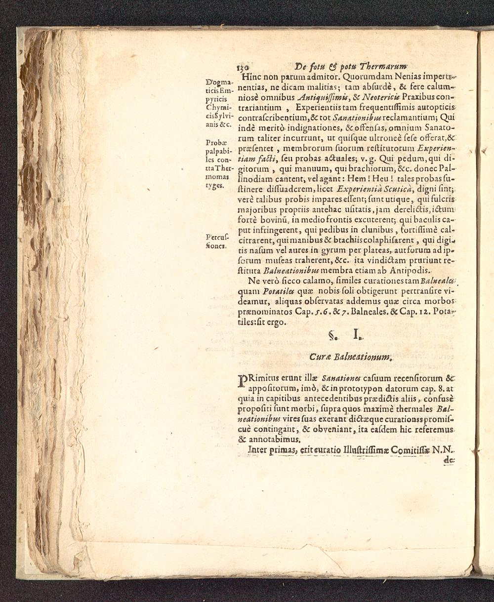 "pRimitus erunt illae Sanatienes cafuum reccnfitorum &£appofitorum, imd, &inprototypon datorum cap. 8.atquia in capitibus anteccdentibuspra*di£tis aliis, confusepropofiti funtmorbi, fupraquos maxime thcrmales Bal~neatiottibm viresfuas cxerant diffcequecurationsspromif-cue contingant, & obyeniant,.ita eafdem hic refcremus& annotabimus.Incer primas, ericeuracio Illuftriflims Comitifls N.N..