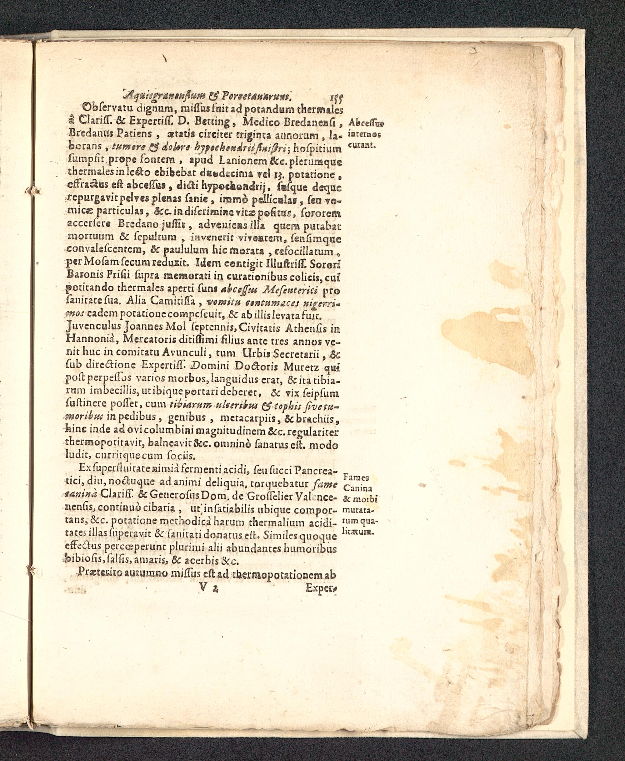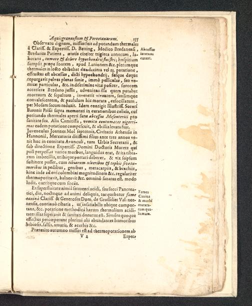 ©bfervatu dignum, niifliisfnitadpotandum thermtlcsa ClariiT. & ErpertiiT, D. Betting, Medico Bredanenfi , AfeceffroBredaniis Patiens , attatis cireitcr triginta annoram , la« »»"rn»sborans t tumtre 0 doUre hjfiehettiriiJiHifiri; hofpitium curaa1,fumpfit propc fontem , apud Lanionem Scc. pleruraquethcrmalesinle&o ebibcbat dB*dscima tcI ij. potacione ,cffra&us eft abcefiuj , di&i hypoehendrij, fefque dequerepurgavirpelres plcnas fanie , immp pellicnla», feo to-micss particulas, &cuindifcriminevicspoaW, fororcinaccerfere Brsdano ; uffit, adveniess illa quem putabacraortuum 5c fepultum , iuvcncrit vivei&ceni, fenfjmquceonvalsfcentem, Sc paululum hic fnoraca , esfociliacum ,per Mofam fecum redusic. Idem centigit IlluftriiT. SororiBaronis Frifii fupra memorati in curationibus colieis, culjsericando thermalcs apcrti funj abcefia Mefcntcriti profanic2Cefua. Alia CamiciiTa , votnitu emtamiccs nigcrri-mos eadem pocacionc compcfcuic, Sc ab iliislevatafuir.Juvenculus Joannes Mol fcpcennis,Civitatis Athenfis inHannonia, Mercacoris ditiffimi nlius ance trcs annos vc-nic huc in comitatu Avunculi, tum Urbij Secrcrarii, tk.fub directione ExpertuT- Domini Do&oris Murecz qutpoftperpeiibs varios morbos, languidus crar, &itacibia-rnm imbecillis 3 utibiquepsrrarideberec, & vix feipfumfuftinere poiTet, cum ti&iamm nlierihw & topltis fivetie-vnoribm in pcdibus, genibus , metacarpiis, &brachiis,hinc inde adovicolumbini magnitudincm Scc. regularitcrtbermopotitavit, balneavicffcc. omnind fanatuselt. modoludic, curritquecum fociis.