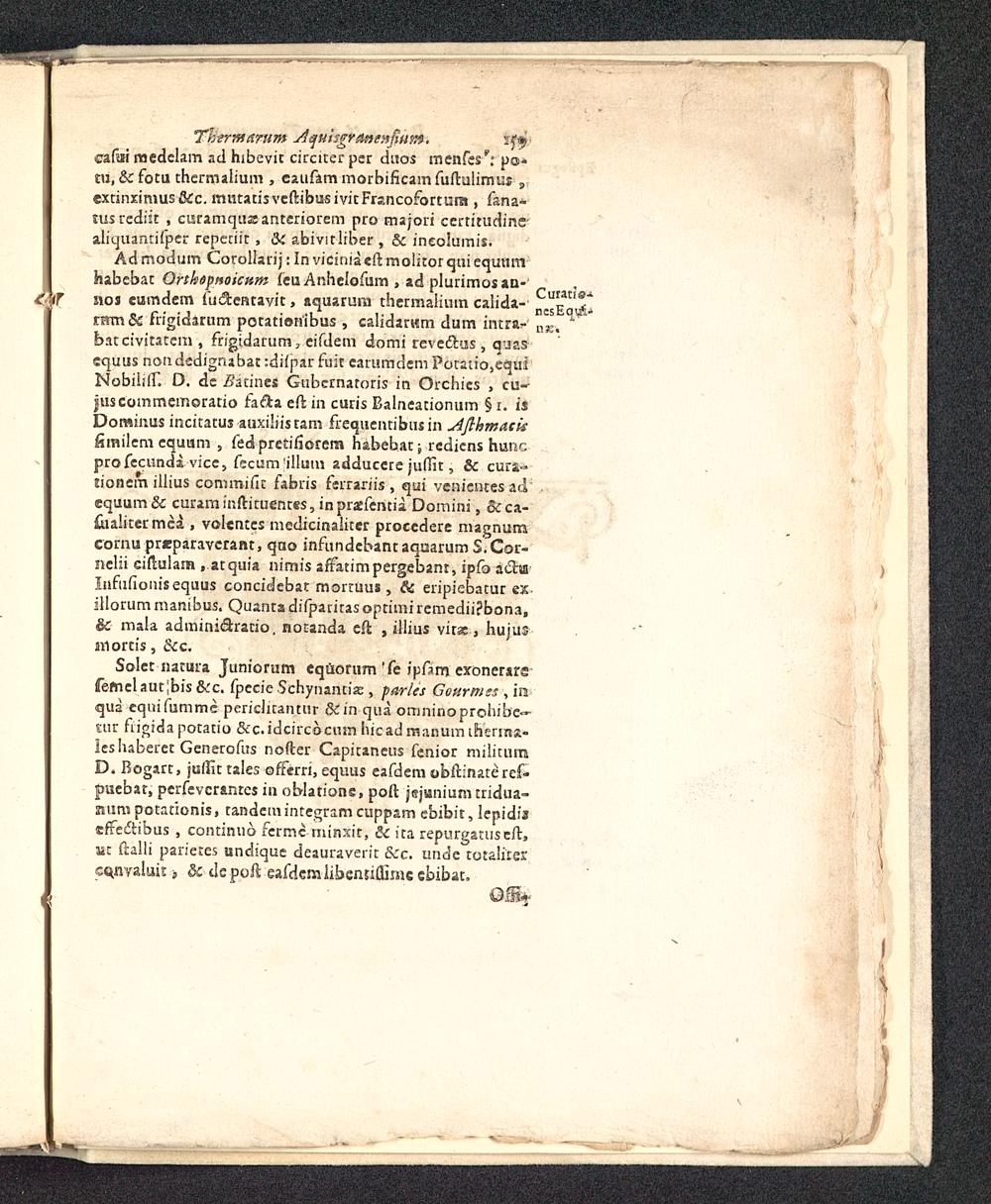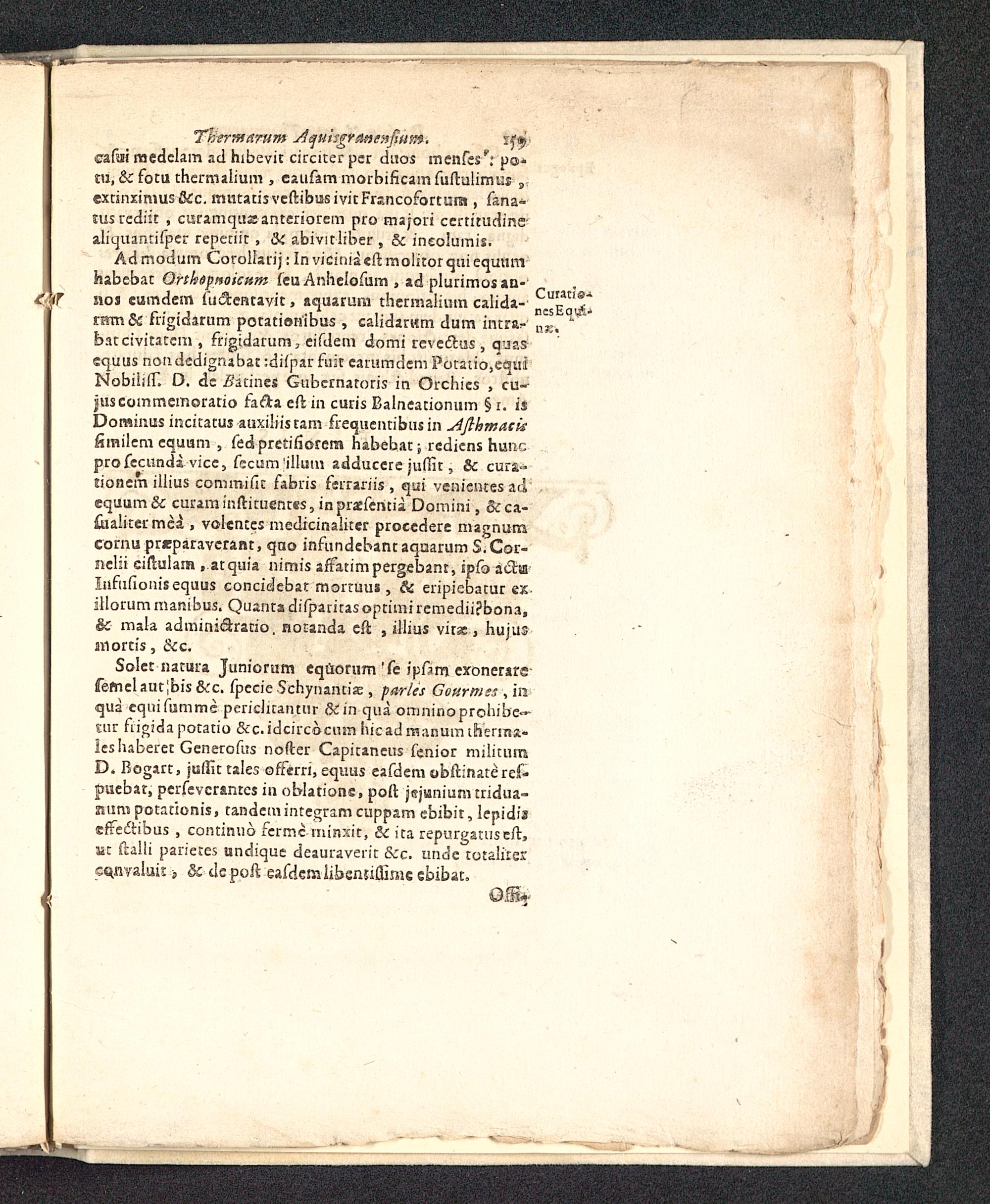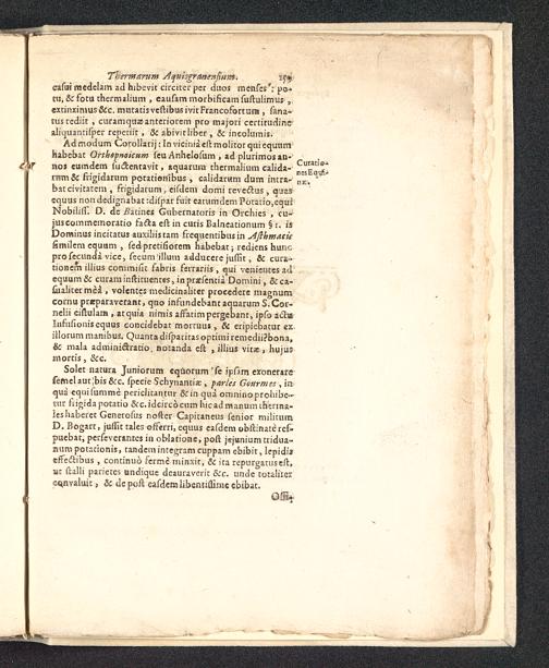 Admodum Corollarij:Invicitiiaeftmolitorquiequumhabcbat Qrthefnoicum feuAnhelofum , ad plurimosan- Curat ; e .<M nos cumdem fu&cntavit, aquaruni thermalium calida- E ^nrm& frigidarum potatiotiibus , calidantm dum intrar nE< *batcivitarem , frigtdarum 3 eifdem domi reve&us, qussequus nondedignabac :di(par fuit carumdem Potatio,equiNobililF. D. de Z>atines Gubernatoris in Orchics , cu-juscommcmorario fa&a eft in curis Balneacionum § i. isDominus incicacus auxiliiscam frequencibus in Afthmntisfimilemequum , fedprctifiorem habebar; rcdicns huncprofecunda vice, fccum 'illum adduccre juffir, & cur&~tionem illius commific fabris fsrrariis , qui venientes ad" •equum& curaminftituentes, inpraefentia Domini, &ca-kiaiitermea , volcntcs medicinaliter proccderc magnumcornu preparaverant, qao infundcbantaquarum S.Cor-nelii ciftulam , atquia nimis afratimpergebanr, ipfo ac~haInfufionisequus concidebat morruus, & eripiebatur ex-illorum manibus. Quanra difparitas oprimi rcmediipbona,& mala adminidratio. notanda cft , illius vitse , hujusinortis, &c.