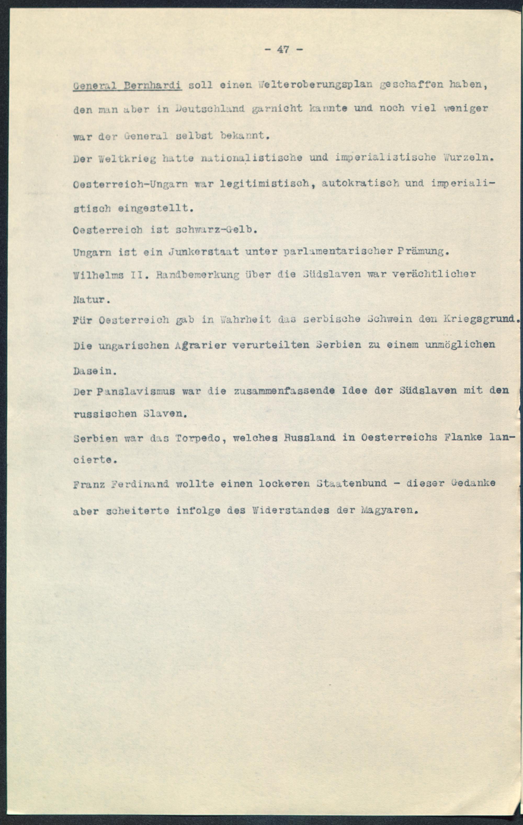 Der Weltkrieg hatte nationalistische und imperialistische Wurzeln.Oesterreich-Ungarn war legitimistisch, autokratisch und imperiali-stisch eingestellt.