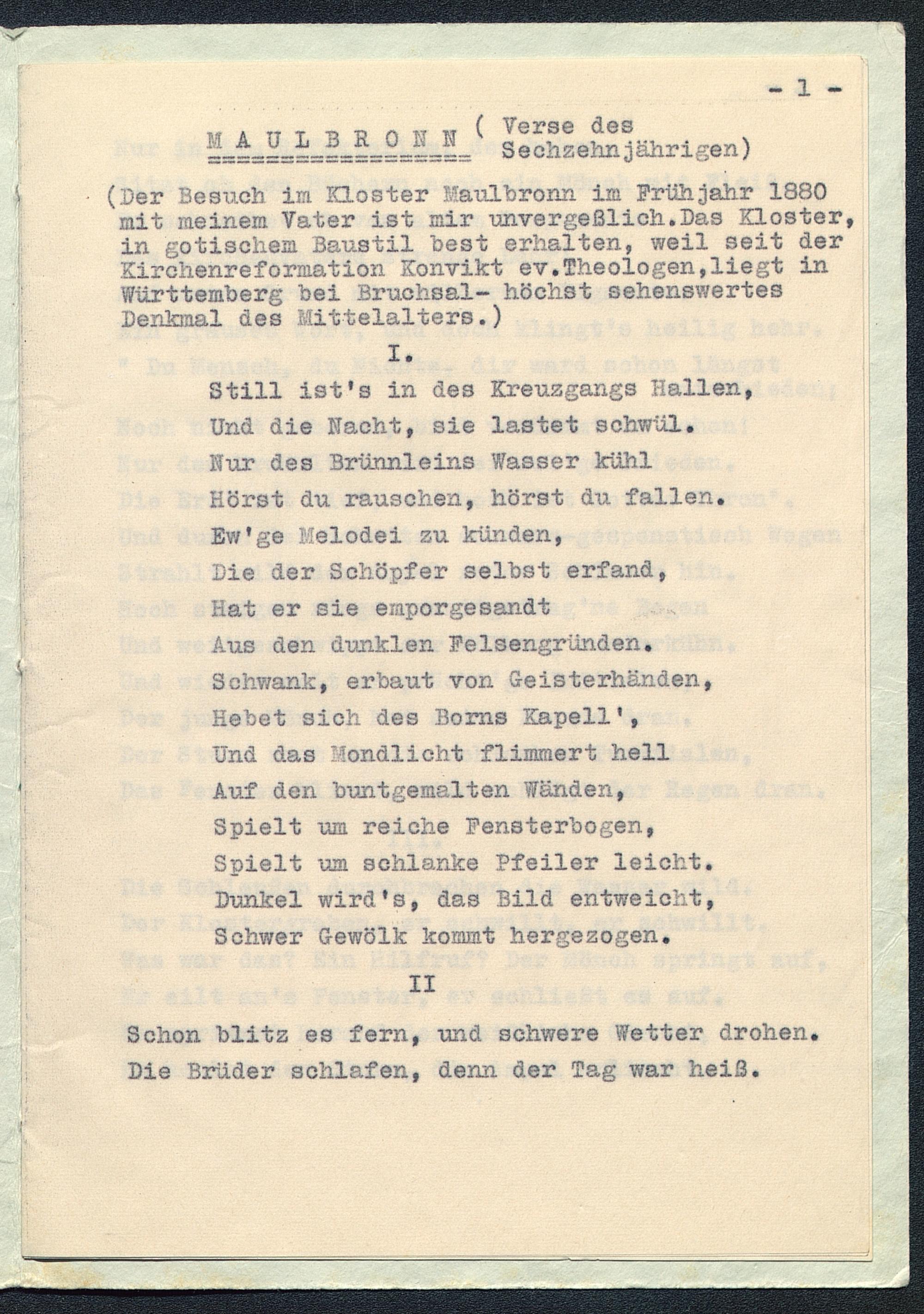 mit meinem Vater1 ist mir unvergeßlich. Das Kloster,↩