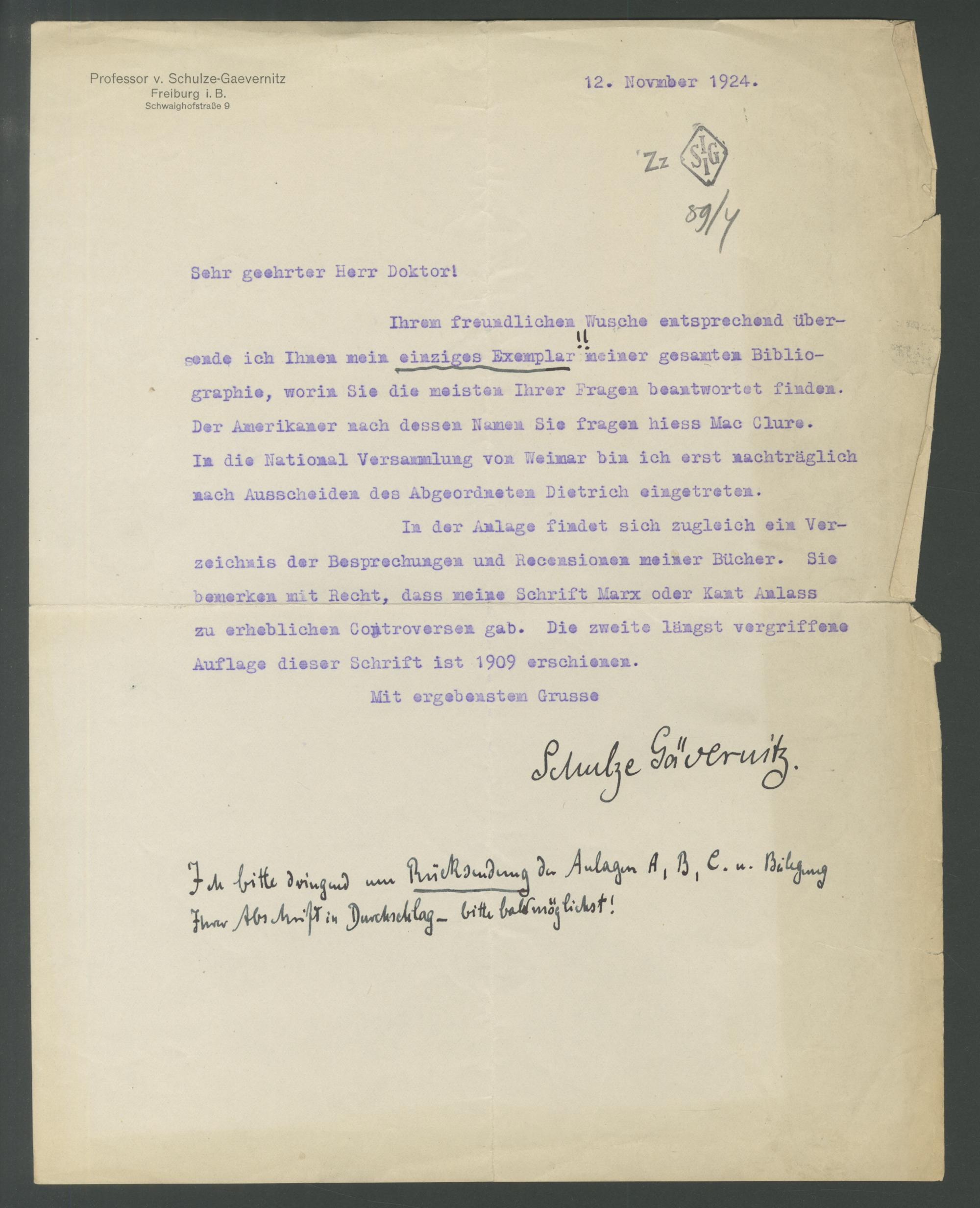 - Gemeint ist wohl der amerikanische Journalist Samuel Sidney McClure , der 1917 unter dem Titel Obstacles to Peace ein umfangreiches Werk über den ersten Weltkrieg vorlegte. Schulze-Gaevernitz hatte sich im März 1916 in Konstantinopel mit McClure getroffen, um Friedensaussichten auszuloten, siehe die Niederschrift des Gesprächs. ↩