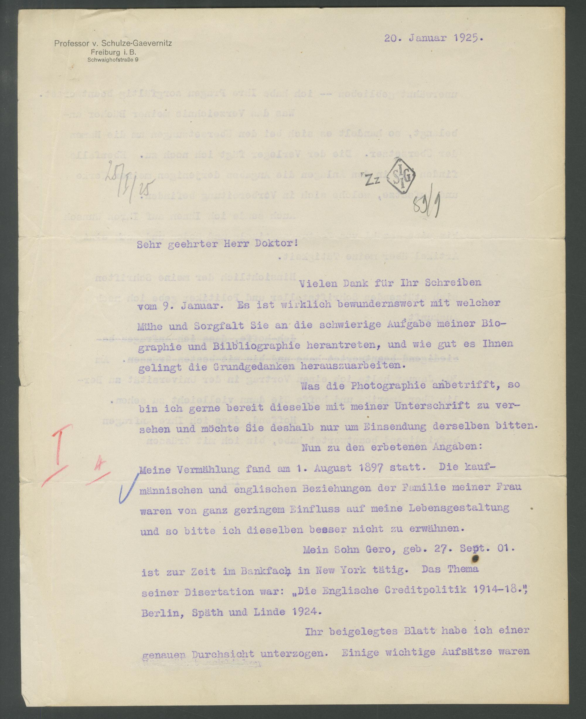 Professor v.Schuize-Gaevernitz 20. Januar 1925.