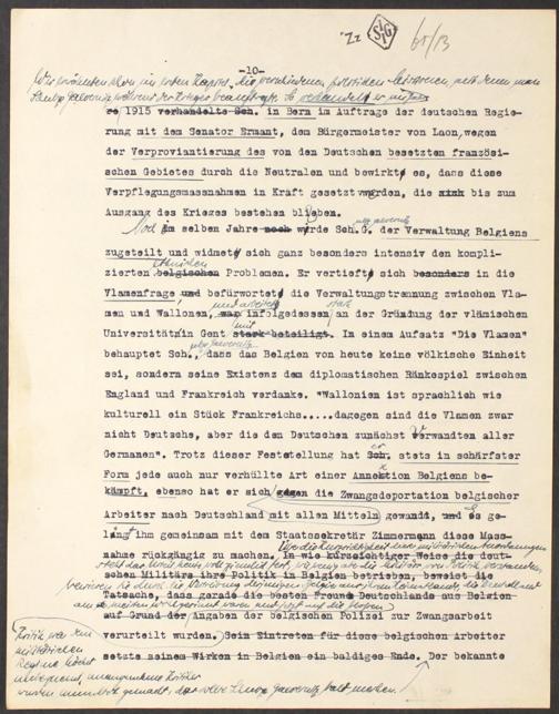 zugeteilt und widmet^ sioh ganz besonders intensiv den konpli-ziertent b e lg i e a he n Problemen. Er vertieft^ 3ich be sonder s in dieVlamenfrage un=d befürwortet^ die Verwaltungotrannung zwischen Vla-