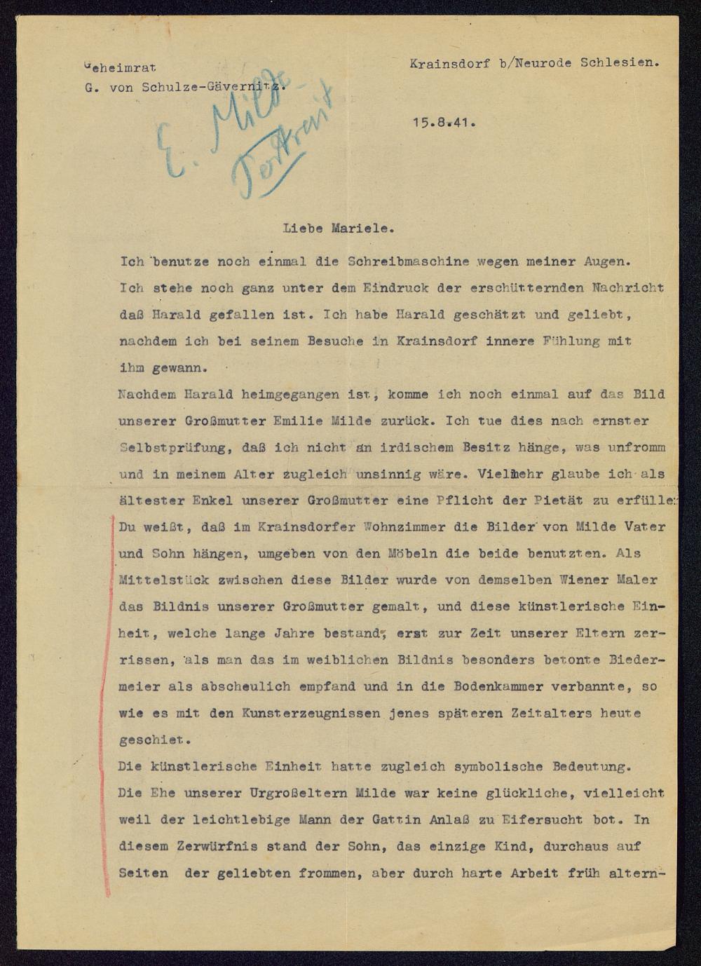 Du weißt, daß im Krainsdorfer Wohnzimmer die Bilder von Milde Vater
