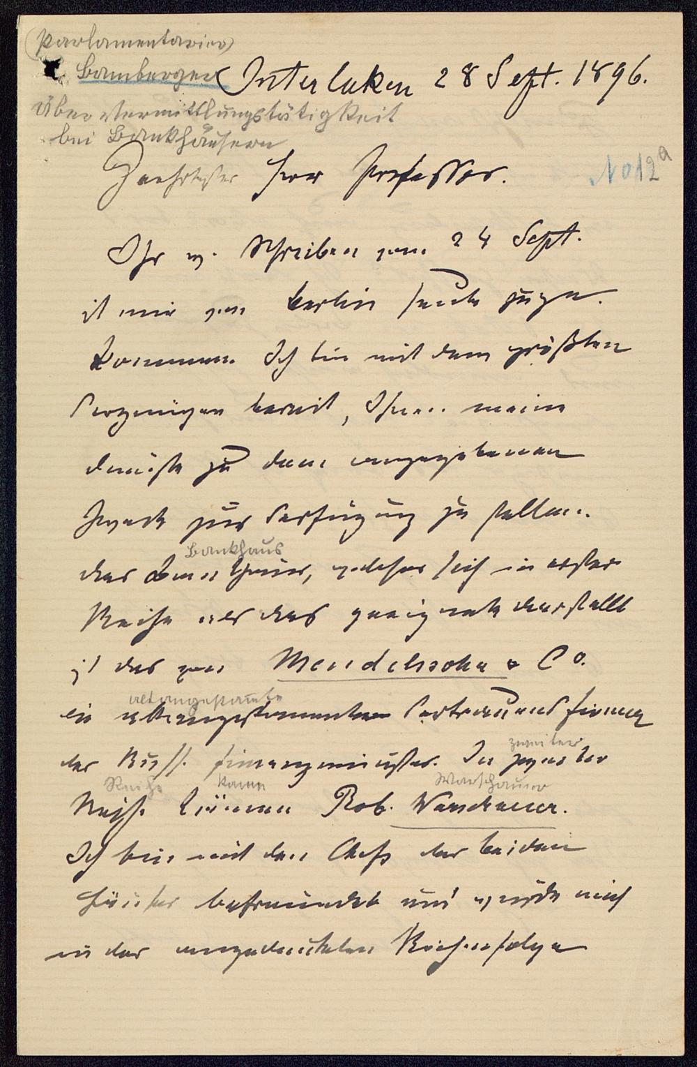 2 Gemeint ist das Bankhaus Mendelssohn & Co., das damals Ernst von Mendelssohn-Bartholdy leitete.