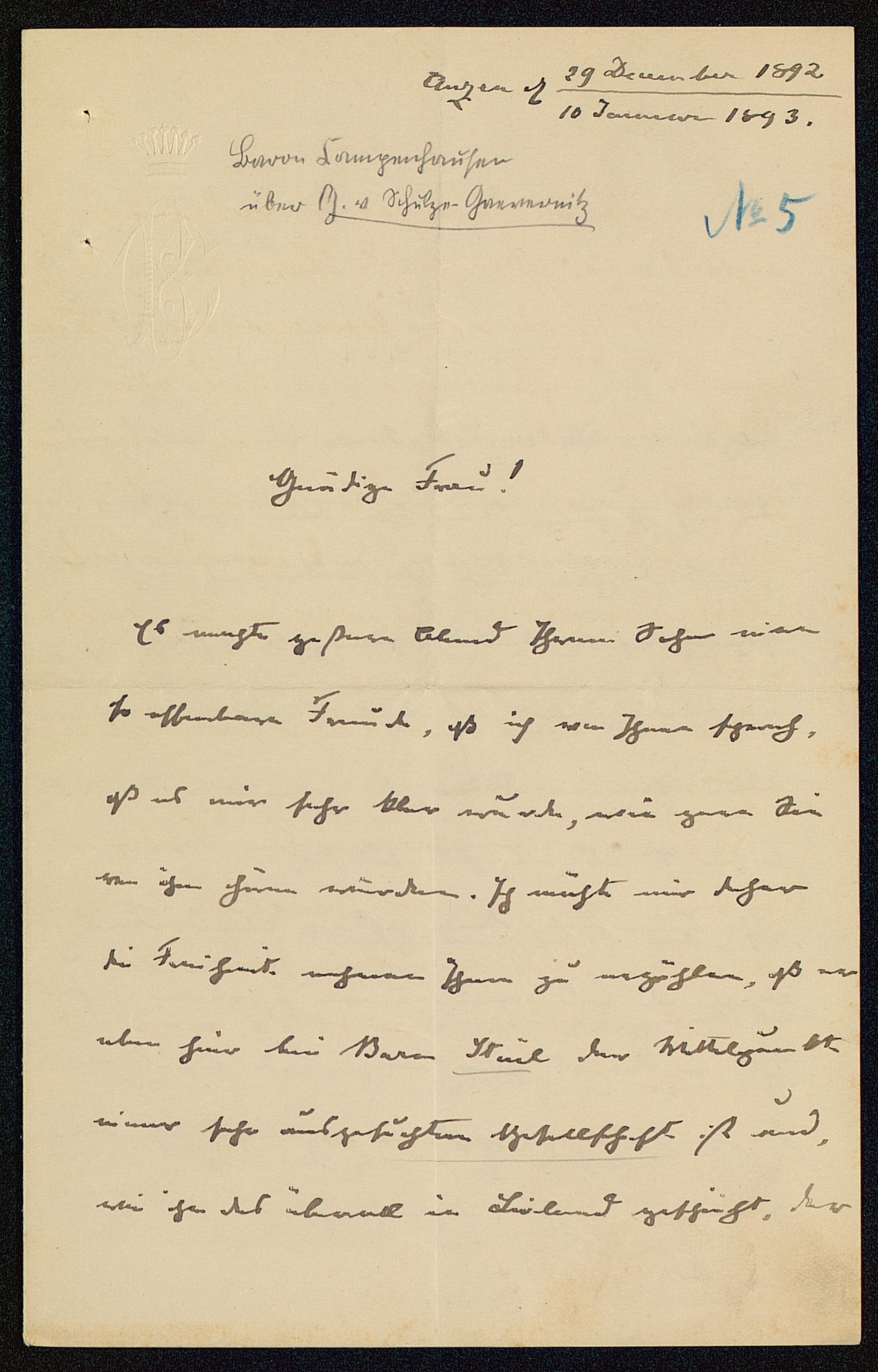 [MS 85 - Brief Campenhausens an Schulze-Gävernitz]
