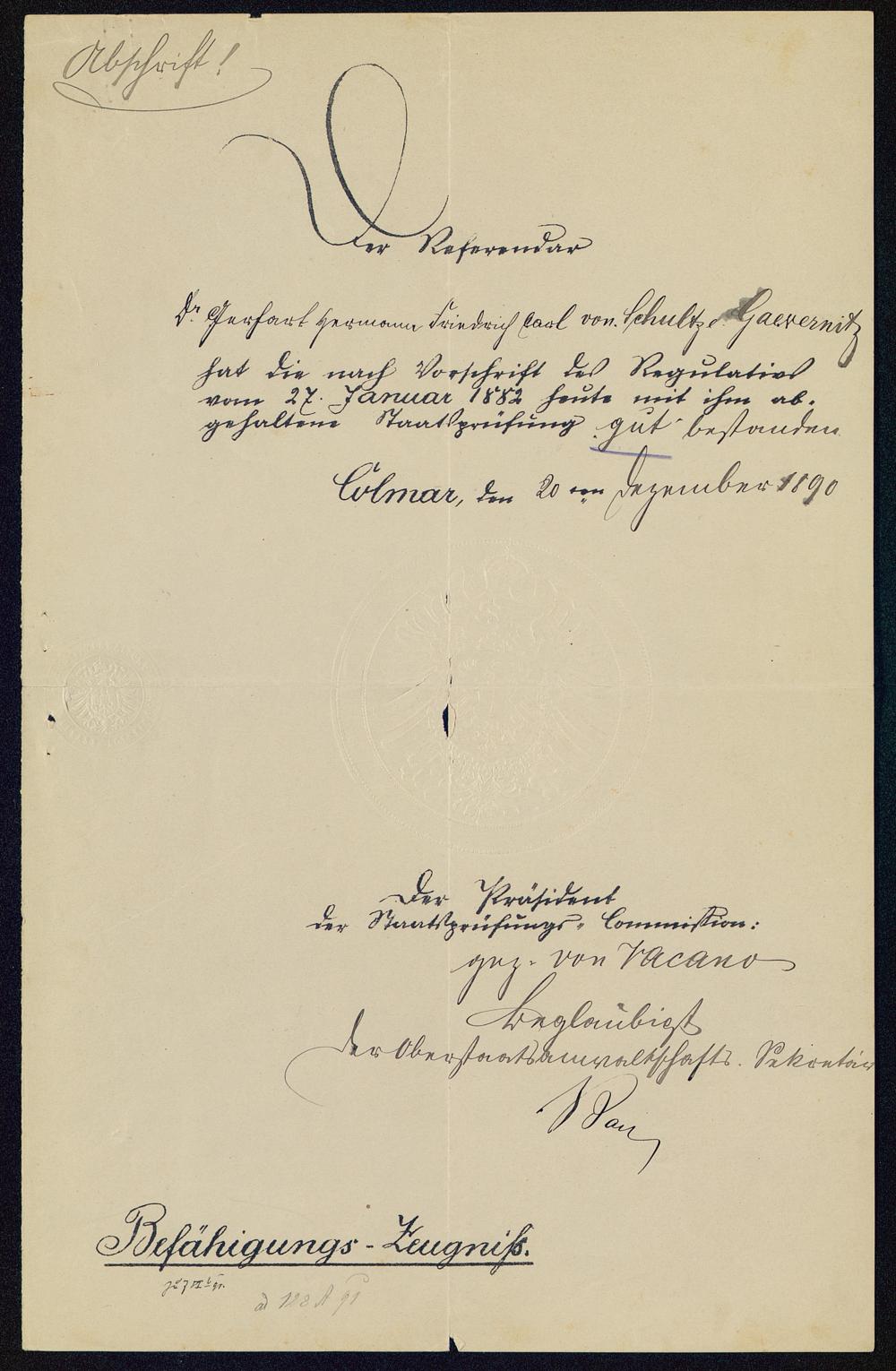 Befähigungs-Zeugniß