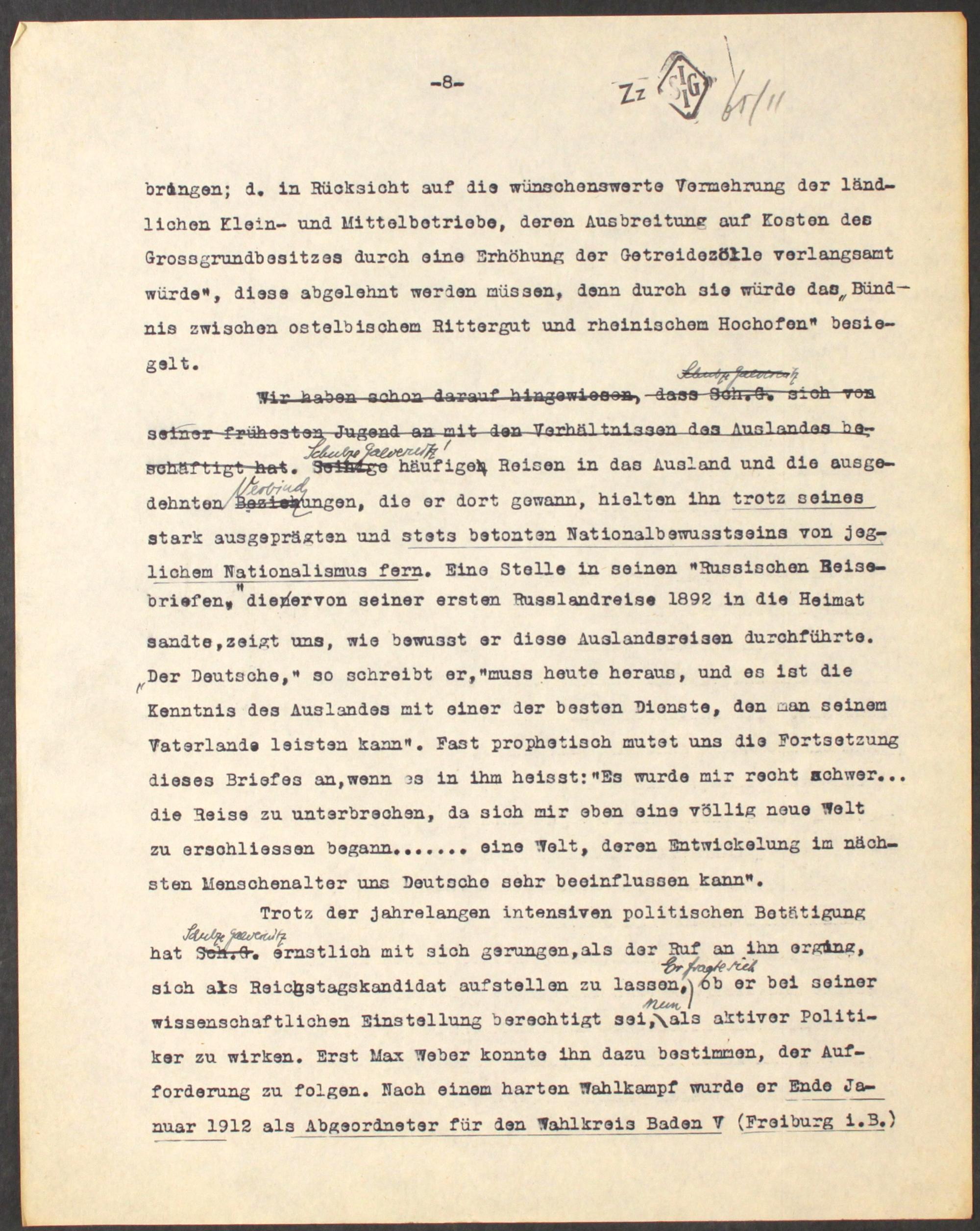 [Mschr. Entwurf der Biographie Schulze-Gävernitz']