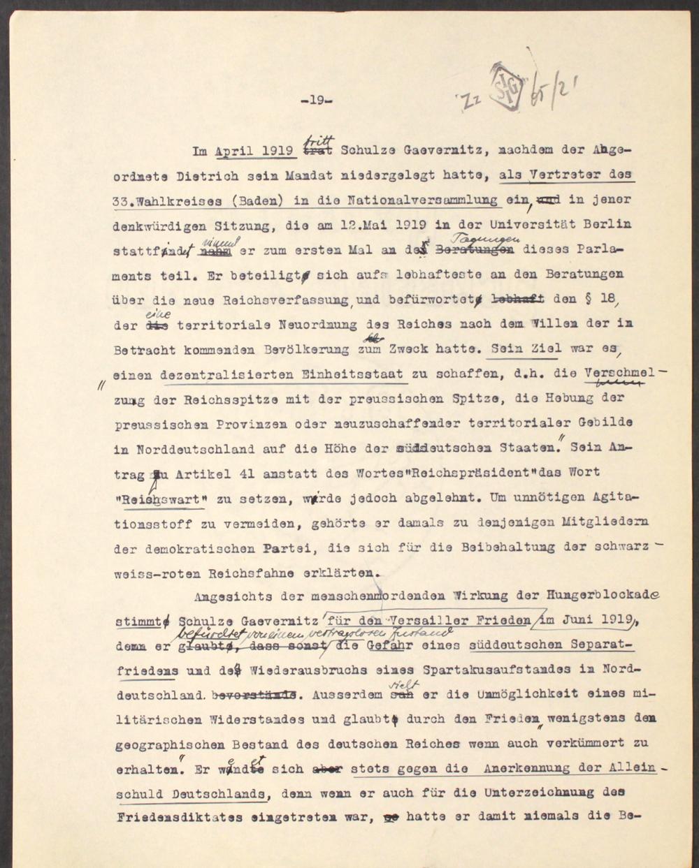 [Mschr. Entwurf der Biographie Schulze-Gävernitz']