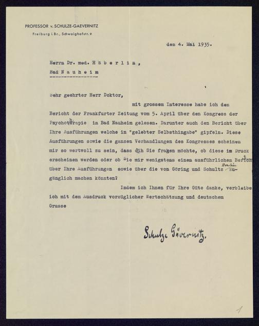 [MS 25 - Brief Schulze-Gävernitz' an Häberlin mit beiliegendem Notizzettel zur 'Schlafkultur']
