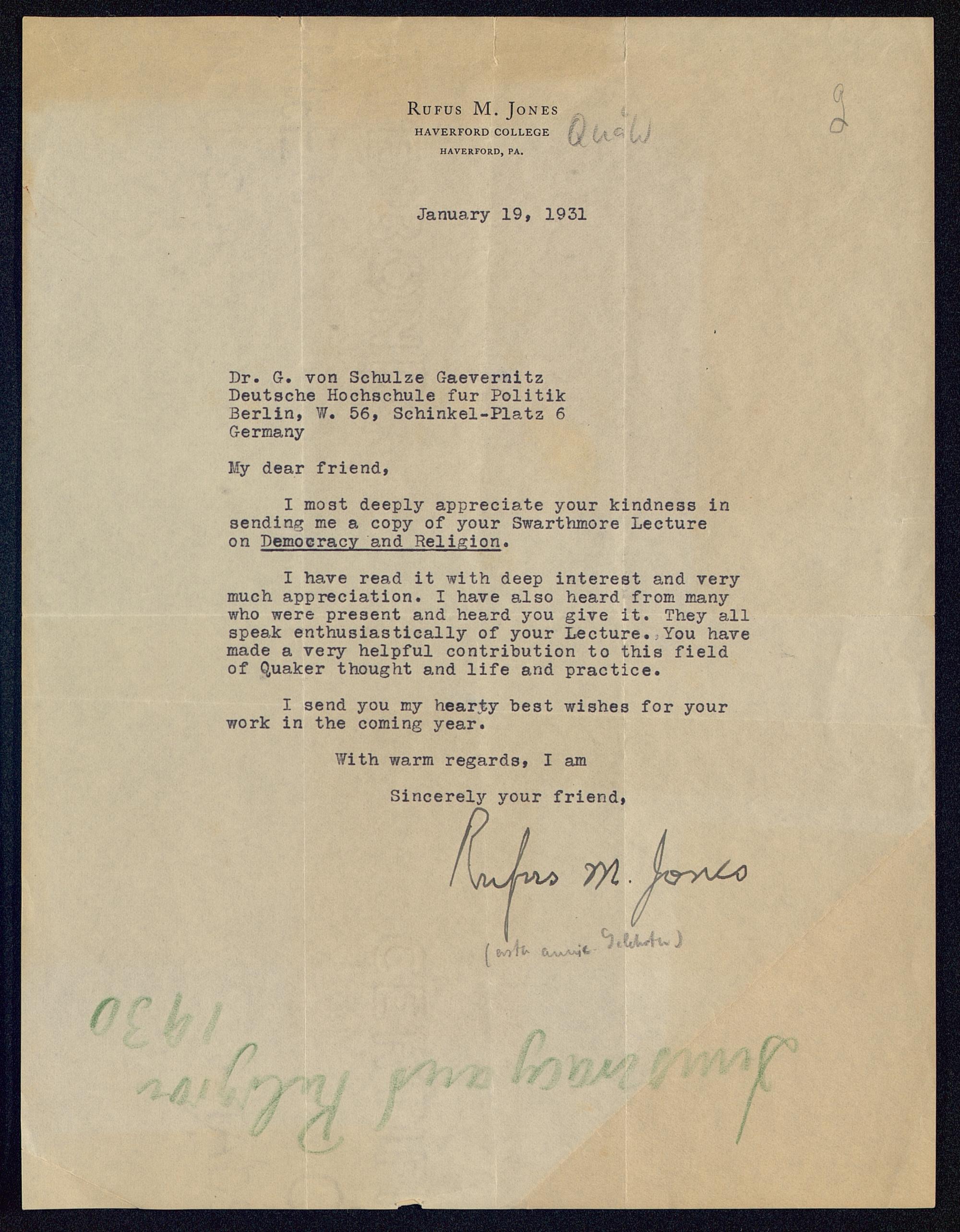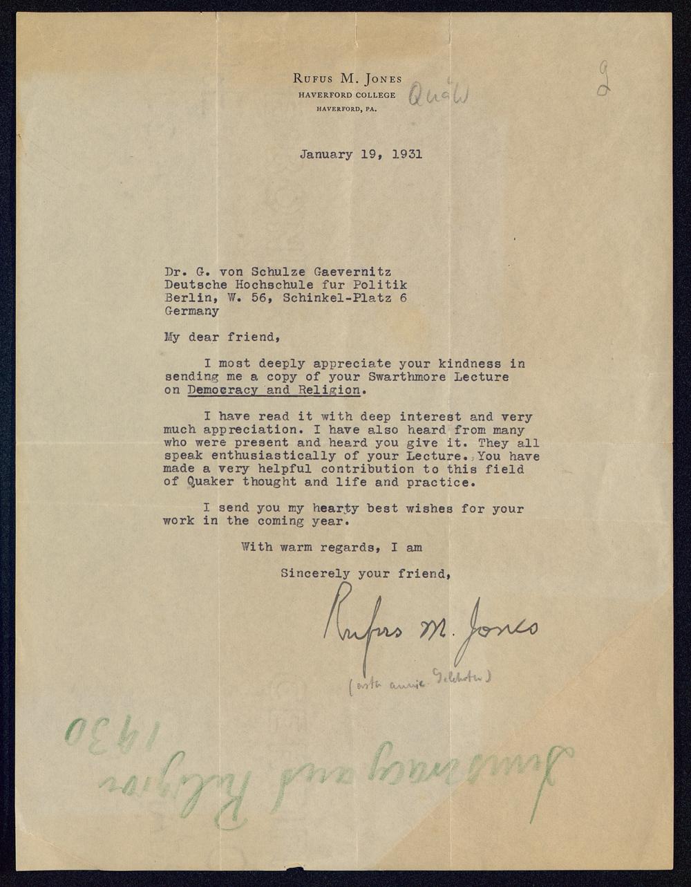 [MS 153 - Brief Jones' an Schulze-Gävernitz]