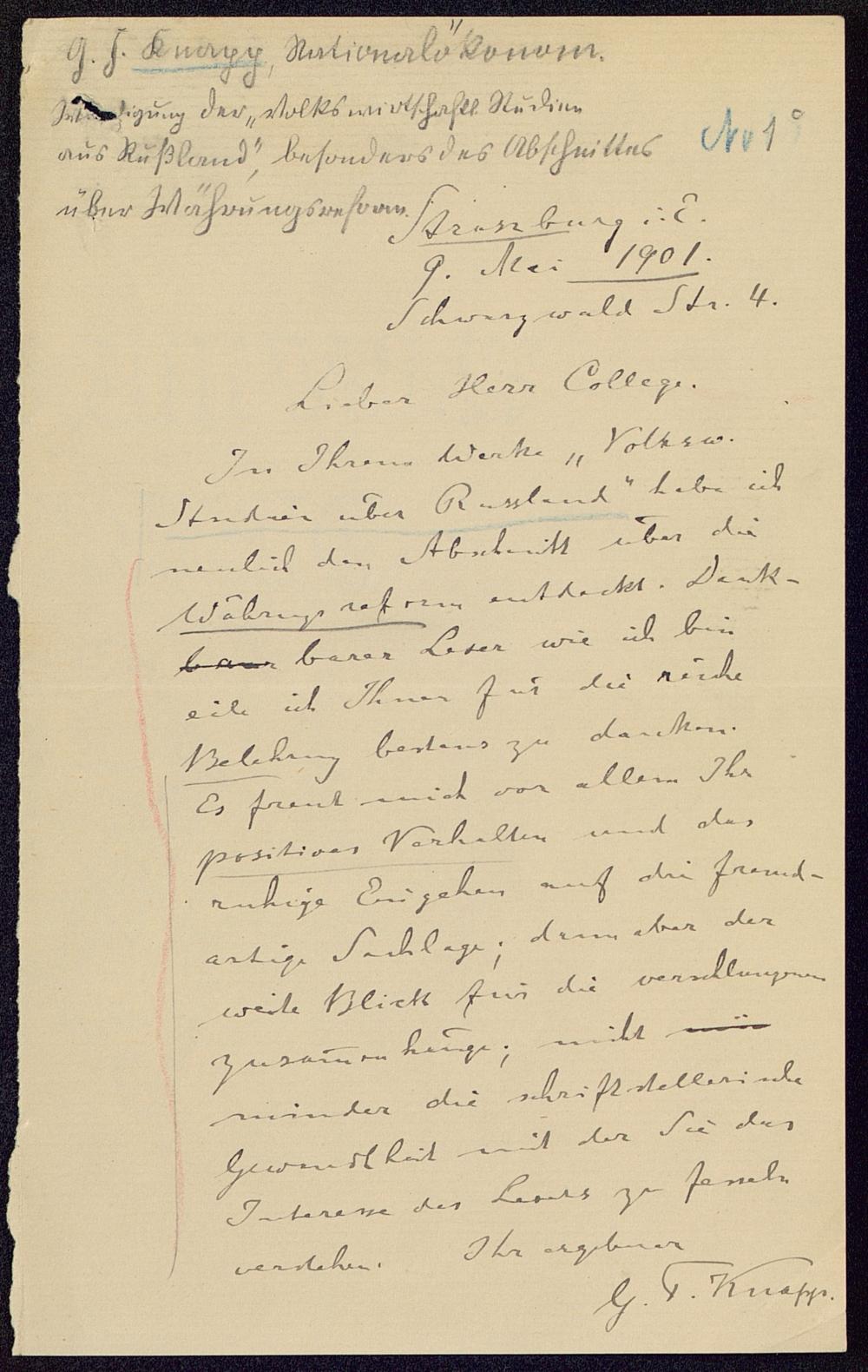 [MS 122 - Brief Knapps an Schulze-Gävernitz]