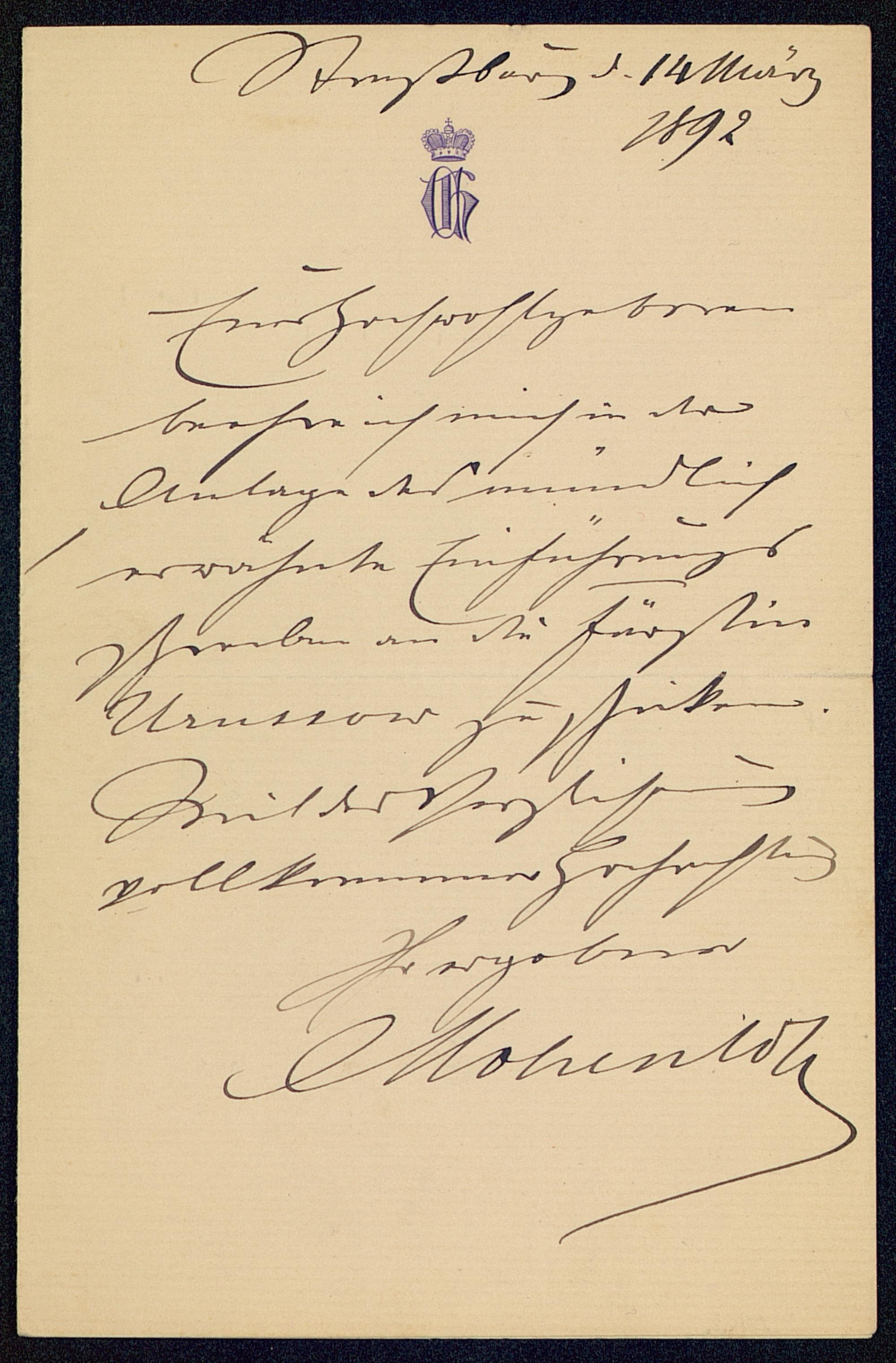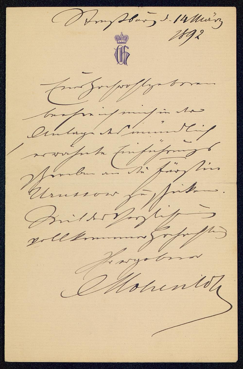 [MS 111 - Brief Hohenlohe-Schillingsfürsts an Schulze-Gävernitz]