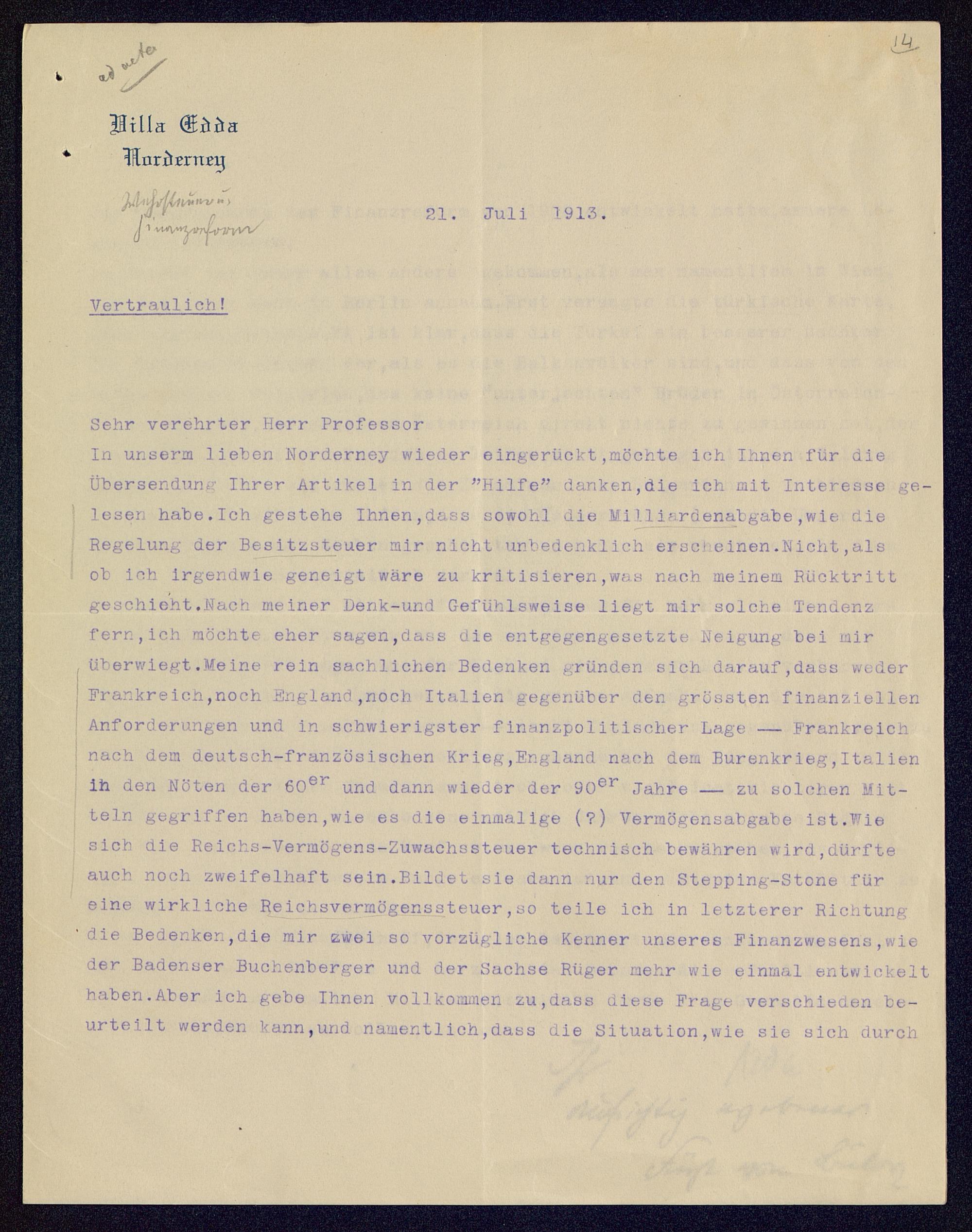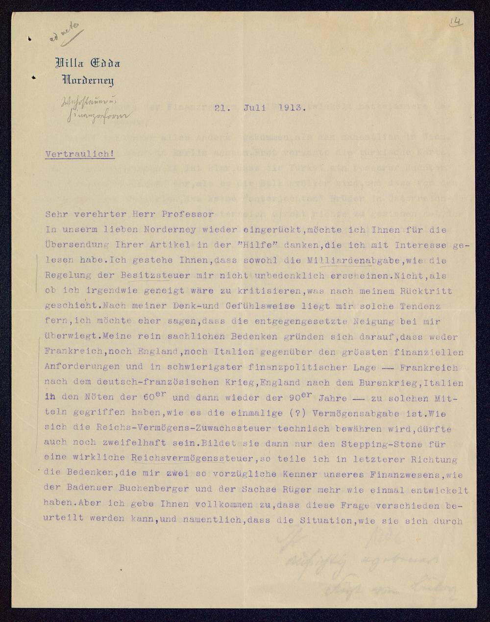 [MS 72 - Brief Bülows an Schulze-Gävernitz]