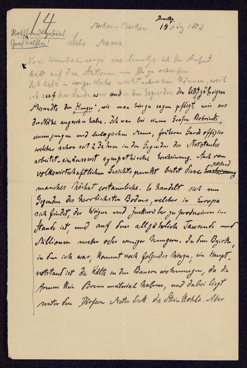 14 [15]: [Brief Schulze-Gävernitz' an Schulze-Gävernitz]