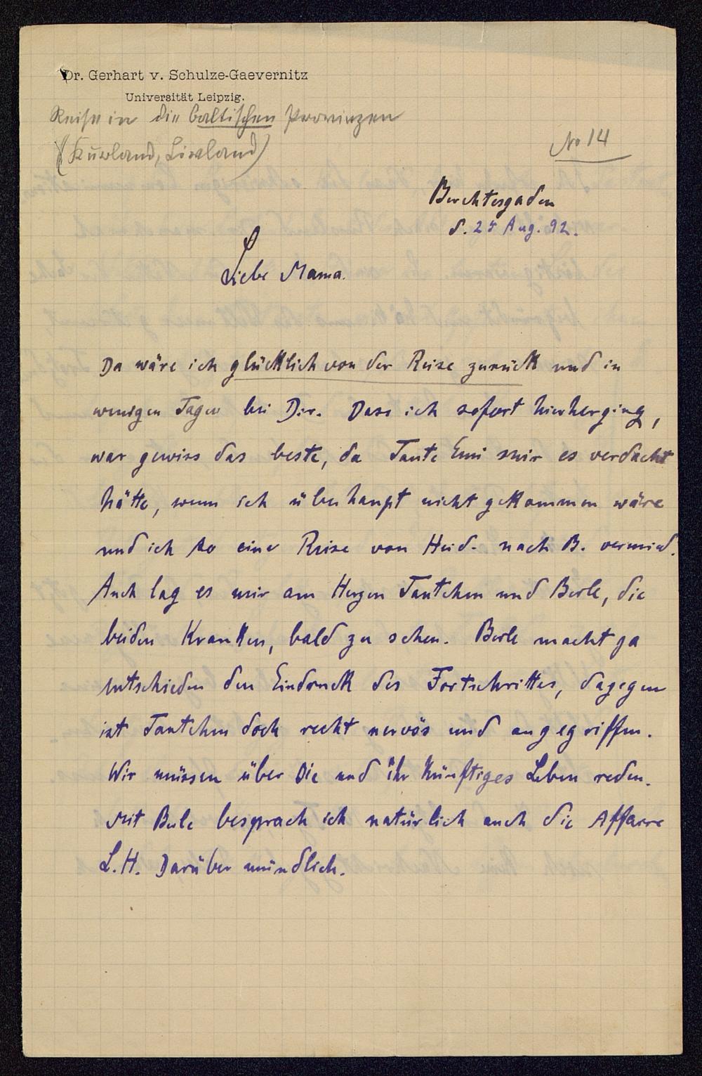 14: [Brief Schulze-Gävernitz' an Schulze-Gävernitz]