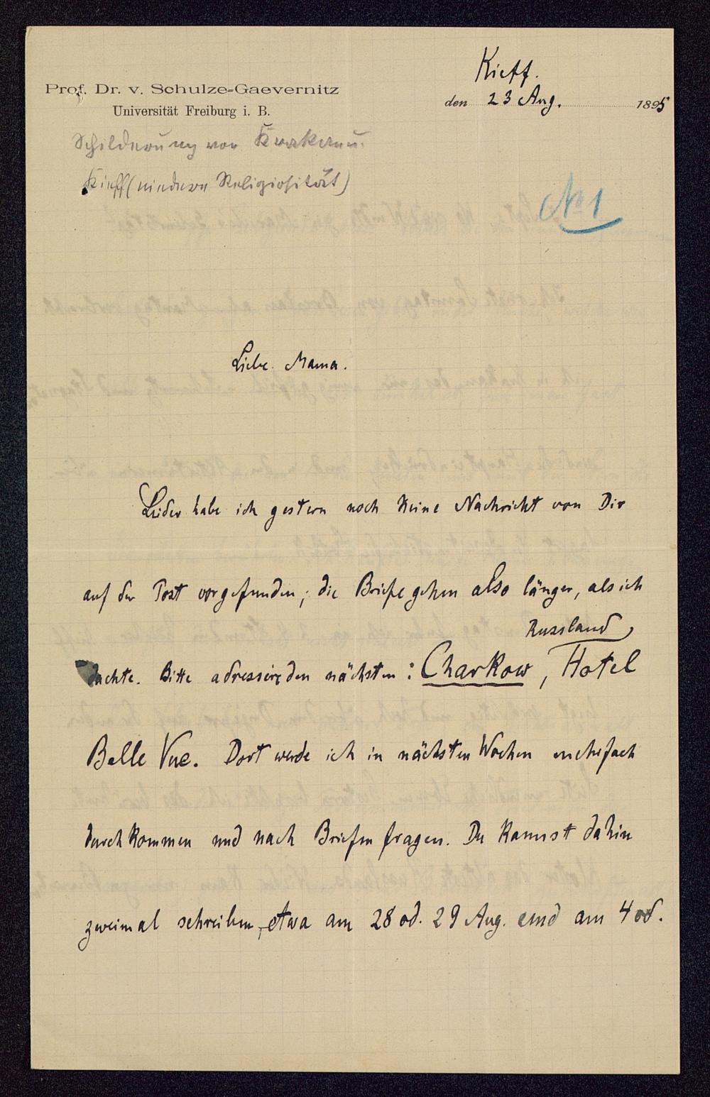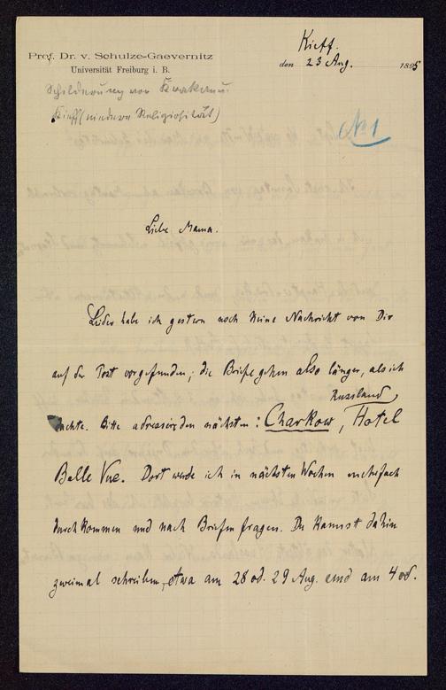 1: [Brief Schulze-Gävernitz' an Schulze-Gävernitz]