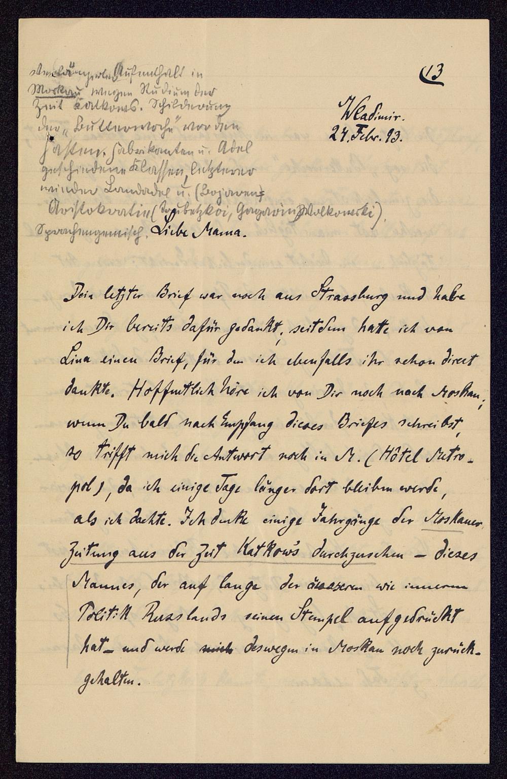 13 [14]: [Brief Schulze-Gävernitz' an Schulze-Gävernitz]