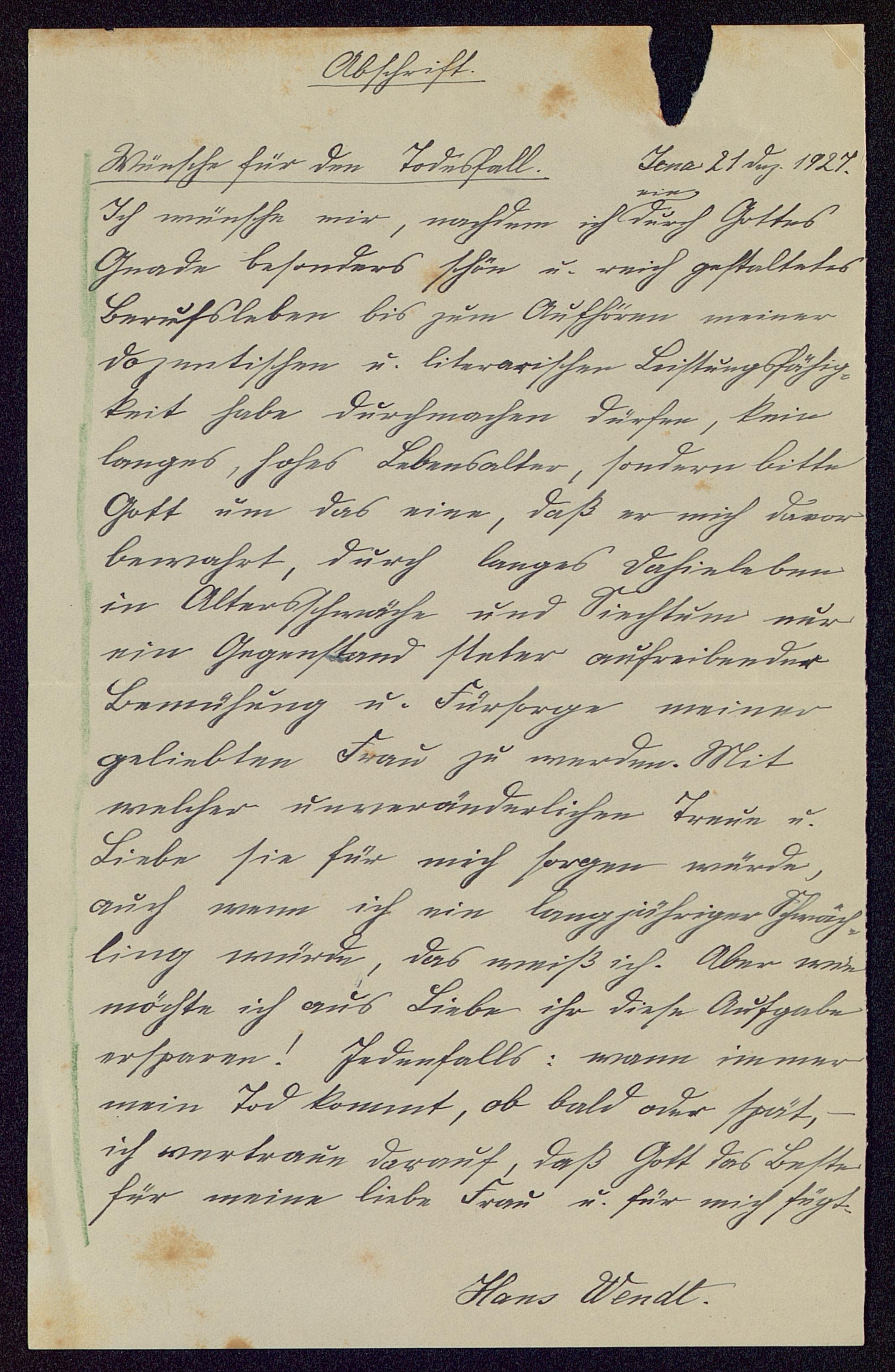 [Brief Wendts an Schulze-Gävernitz]
