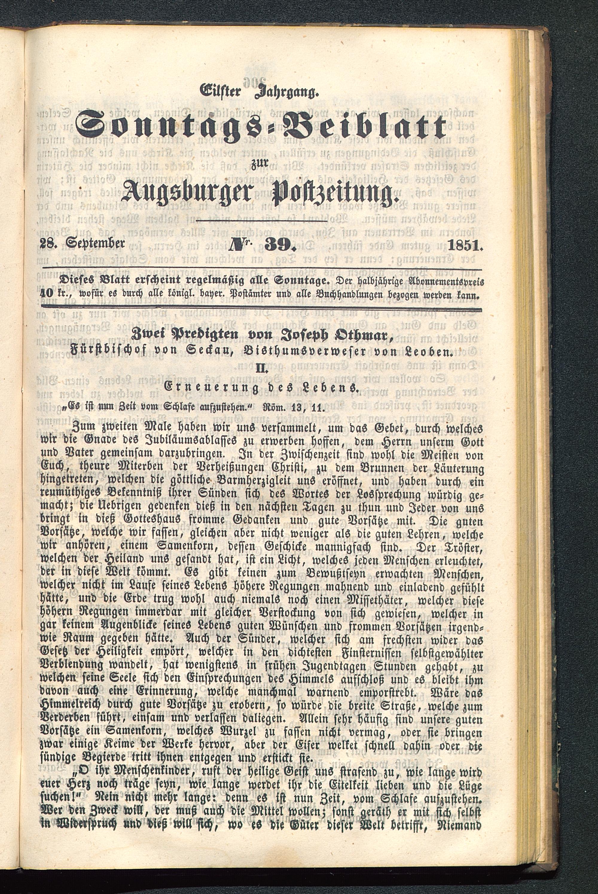 Dieses Blatt erscheint regelmäßig alle Sonntage. Der halbjährige AbounementspreisTV kr., wofür es durch alle köni'gl. bayer. Postämter und alle Buchhandlungen bezogen werde» kaun.