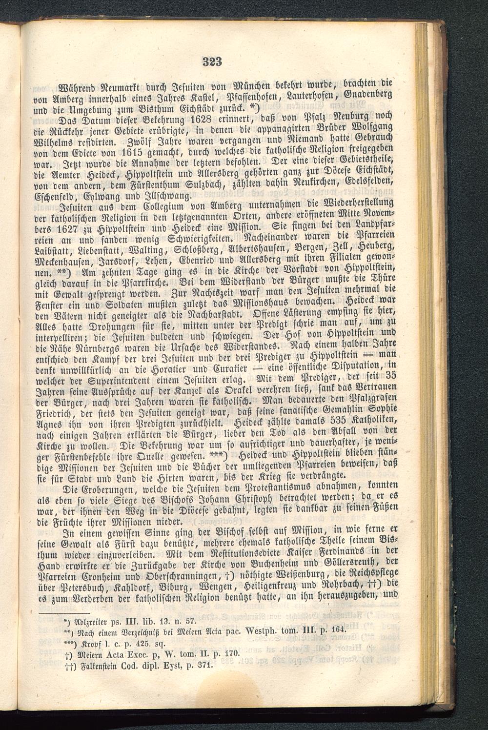 In einem gewissen Sinne ging der Bischof selbst auf Mission, in wie ferne erseine Gewalt als Fürst dazu benutzte, mehrere ehemals katholische Theile seinem Bis-thum wieder einzuverleiben. Mit dem Restitutionsedicte Kaiser Ferdinands in derHand erwirkte er die Zurückgabe der Kirche von Buchenheim und Göllersreuth, derPfarreien Cronheim und Oberschranningen, 5) nöthigte Weißenburg, die Reichspflegeüber Petersbuch, Kahlvorf, Bihurg, Mengen, Heiligenkreuz und Rohrbach, tt) diees zum Verderben der katholischen Religion benützt hatte, an ihn herauszugeben, und