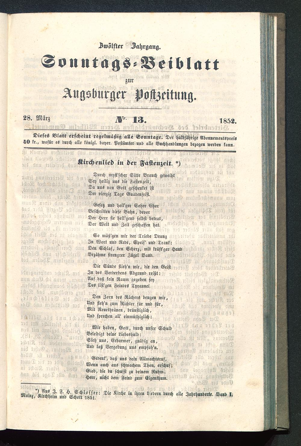") Aus I. F. H. Schlosser: Die Kirche in ihren Liedern durch alle Jahrhunderte. Band l.Mainz , Kirchheim und Schott j8S1,