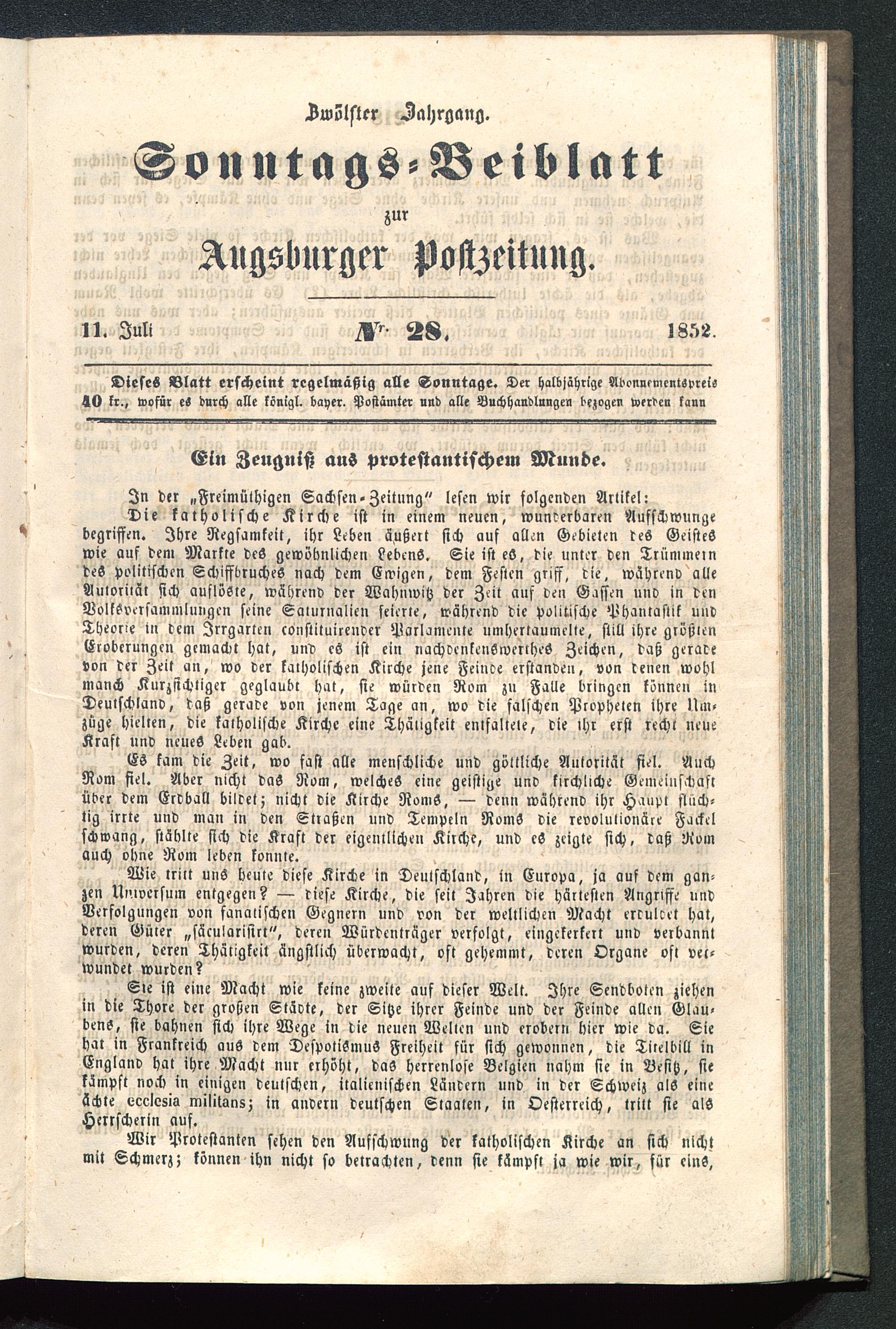 Dieses Blatt erscheint regelmäßig alle Tonntage. Der halbjährige AdonnevicntspreisTV kr., wofür e« durch alle königl. bayer. Postämter und alle Buchhandlungen bezogen werden kaun