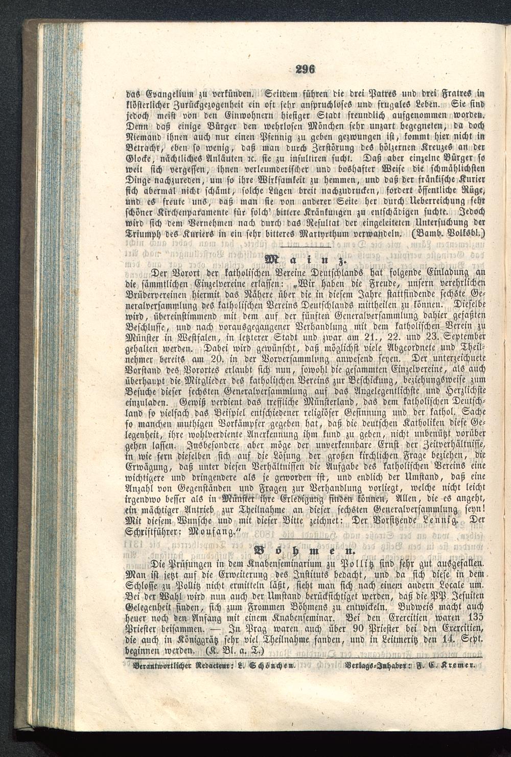 Der Vorort der katholischen Vereine Deutschlands hat folgende Einladung andie sämmtlichen Einzelvereine erlassen: „Wir haben die Freude, unsern verehrlichenBrüdervereinen hiermit das Nähere über die in diesem Jahre stattfindende sechste Ge-neralversammlung des katholischen Vereins Deutschlands mittheilen zu können. Dieselbewird, übereinstimmend mit dem auf der fünften Generalversammlung dahier gefaßtenBeschlusse, und nach vorausgegangener Verhandlung mit dem katholischen Verein zuMünster in Westfalen , in letzterer Stadt und zwar am 21., 22. und 23. Septembergehalten werden. Dabei wird gewünscht, daß möglichst viele Abgeordnete und Theil-nehmer bereits am 20. in der Vorversammlung anwesend seyen. Der unterzeichneteVorstand des Vorortes erlaubt sich nun, sowohl die gesammten Einzelvereine, als auchüberhaupt die Mitglieder deS katholi>chen Vereins zur Beschickung, beziehungsweise zumBesuche dieser sechsten Generalversammlung auf das Angelegentlichste und Herzlichsteeinzuladen. Gewiß verdient das treffliche Münsterland, das dem katholischen Deutsch-land so vielfach das Beispiel entschiedener religiöser Gesinnung und der kathol. Sacheso manchen muthigen Vorkämpfer gegeben hat, daß die deutschen Katholiken diese Ge-legenheit, ihre wohlverdiente Anerkennung ihm kund zu geben, nicht unbenützt vorübergehen lassen. Insbesondere aber möge der unverkennbare Ernst der Zeitverhältnisse,in wie sern dieselben sich auf die Lösung der großen kirchlichen Frage beziehen, dieErwägung, daß unter diesen Verhältnissen die Aufgabe des katholischen Vereins einewichtigere und dringendere als je geworden ist, und endlich der Umstand, daß eineAnzahl von Gegenständen und Fragen zur Verhandlung vorliegt, welche nicht leichtirgendwo besser als in Münster ihre Erledigung finden können, Allen, die es angeht,ein mächtiger Antrieb zur Theilnahme an dieser sechsten Generalversammlung seyn!Mit diesem Wunsche und mit dieser Bitte zeichnet: Der Vorsitzende Lennig. DerSchriftführer: Moufang." _