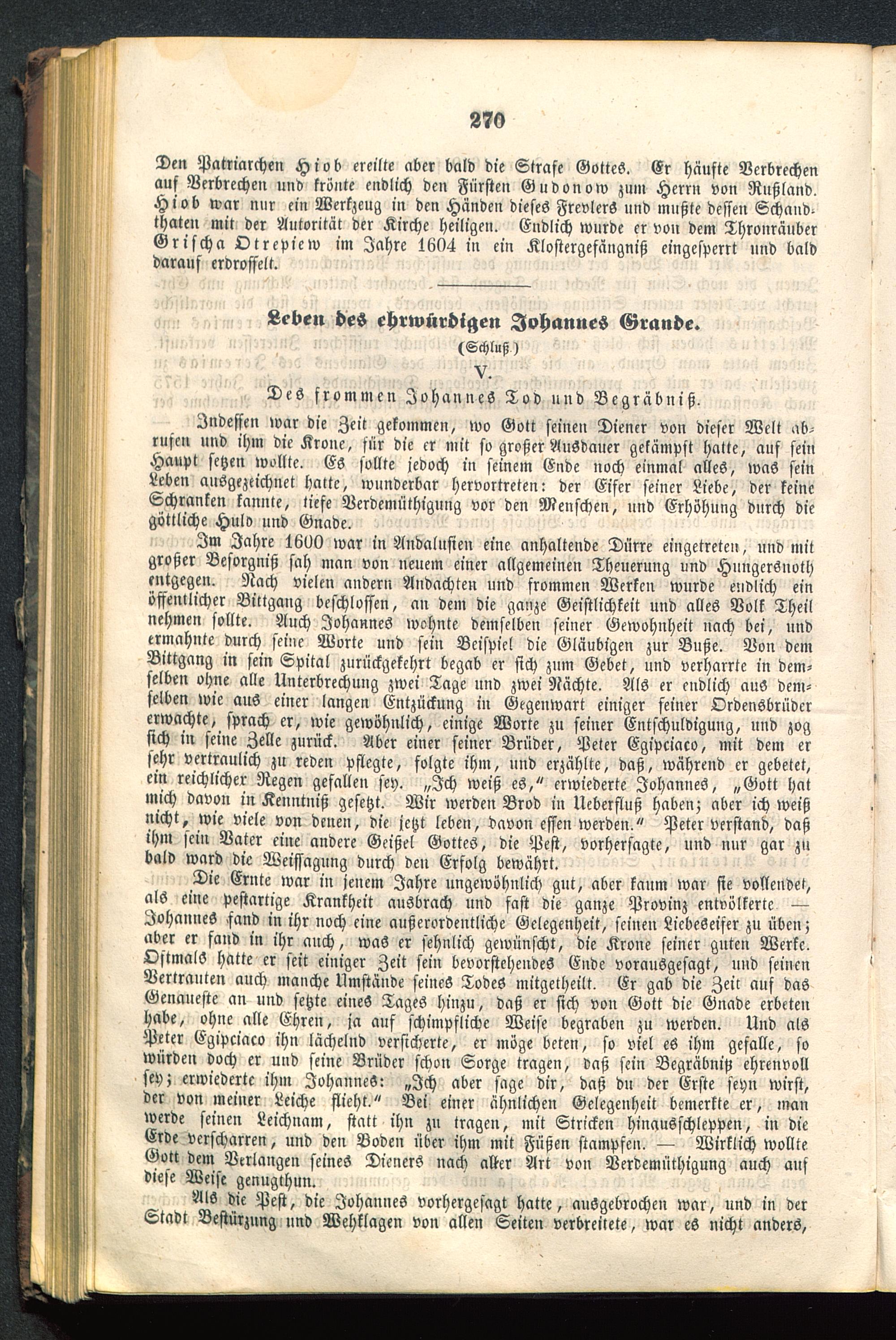 Als die Pest, die Johannes vorhergesagt hatte, auSgebrochen war, und in derStadt Bestürzung und Wehklagen von allen Seiten verbreitete, war es nicht anders,